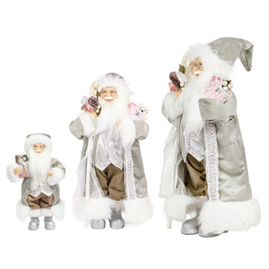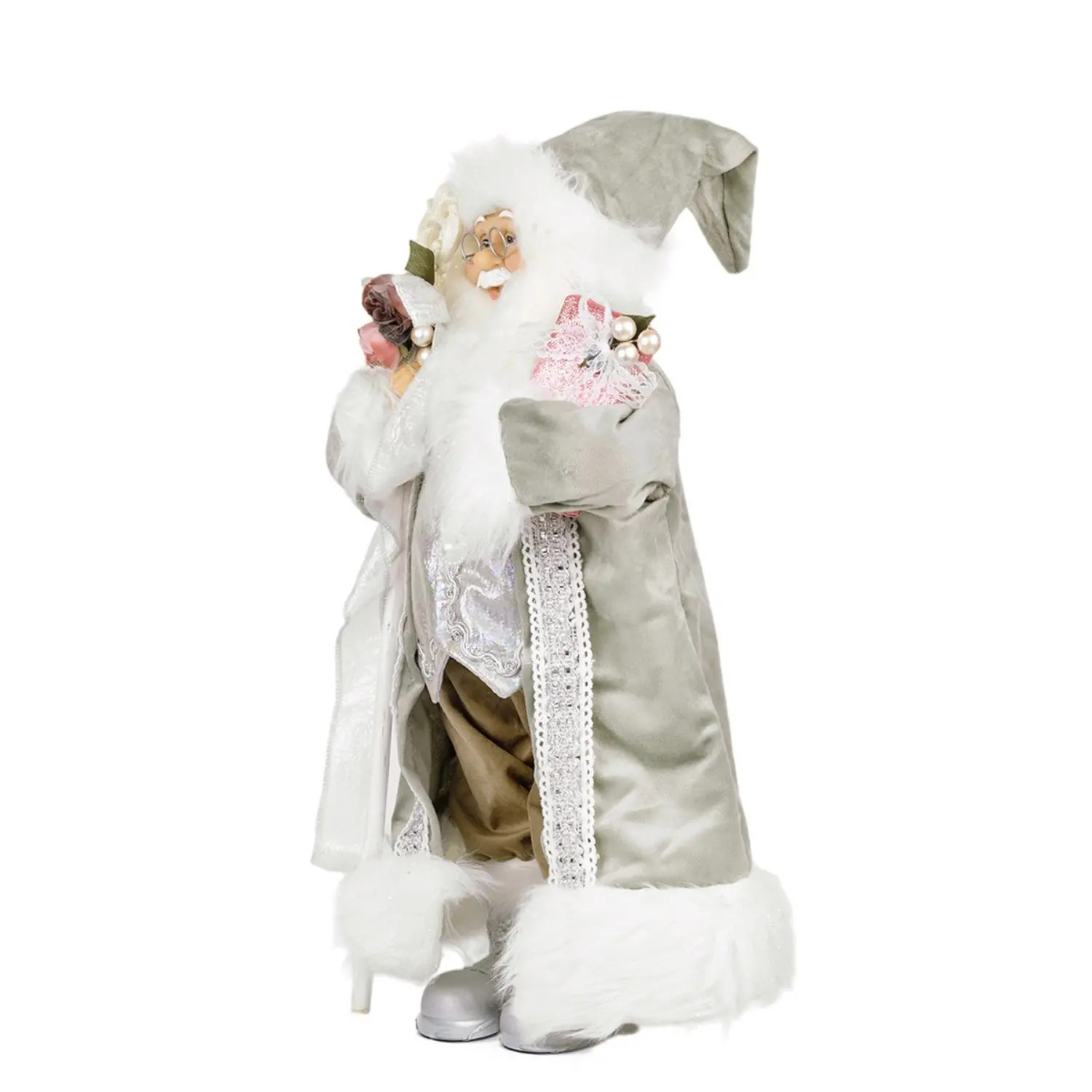 Дед Мороз MAXITOYS в Длинной Серой Шубе с Подарком и Посохом 45см