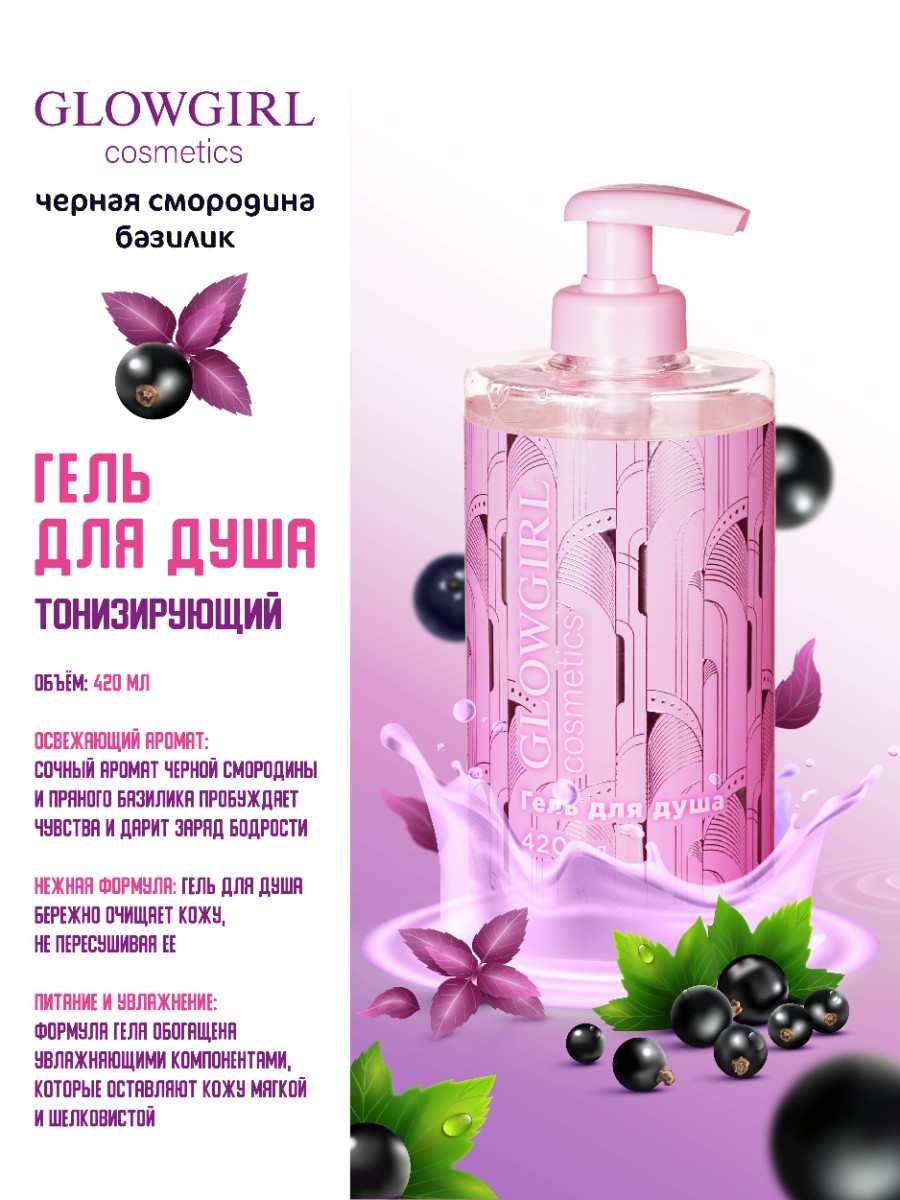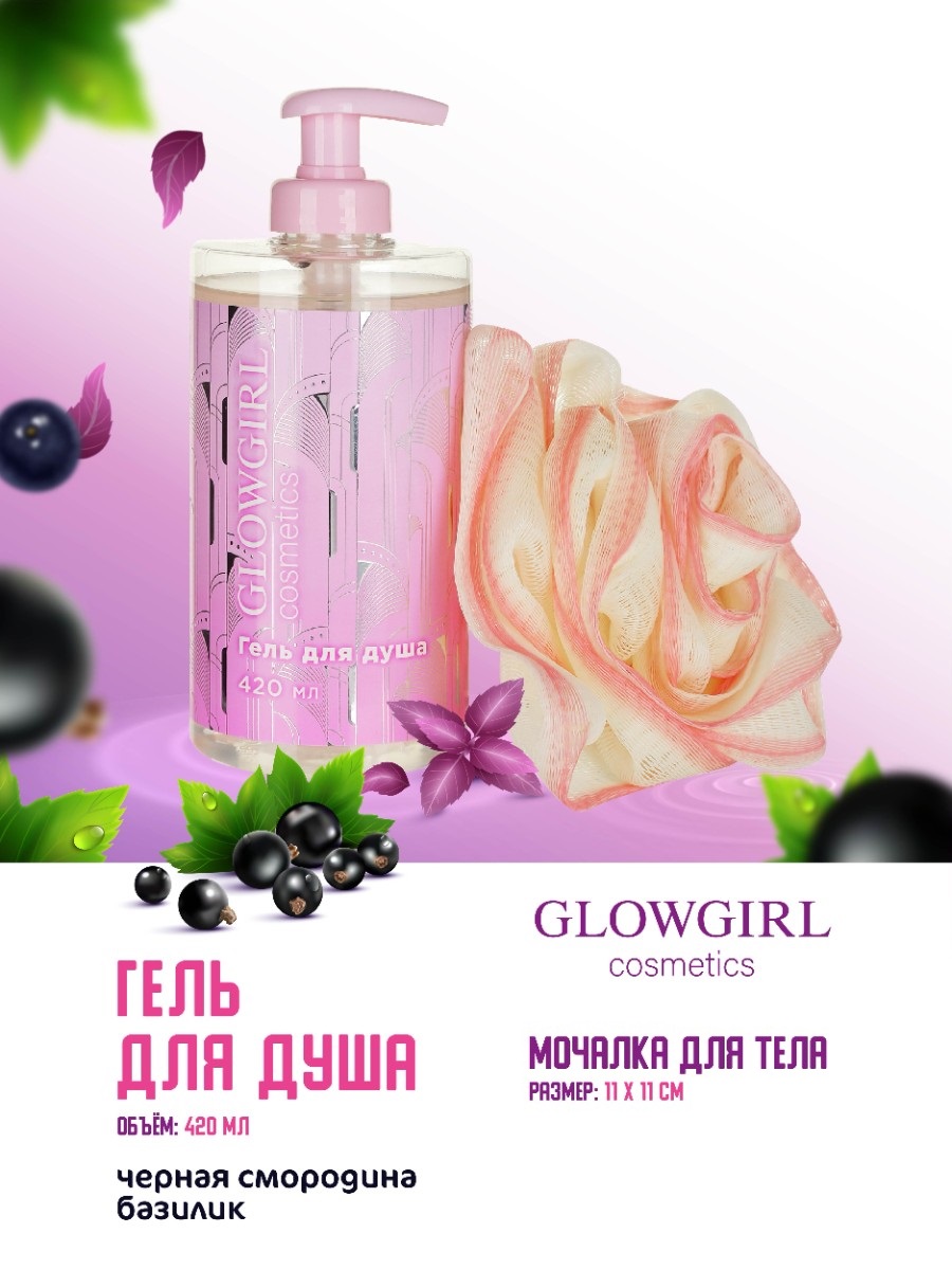 Glowgirl cosmetics Набор Гель для душа Тонизирующий, 420мл. + Мочалка для тела «Роза»