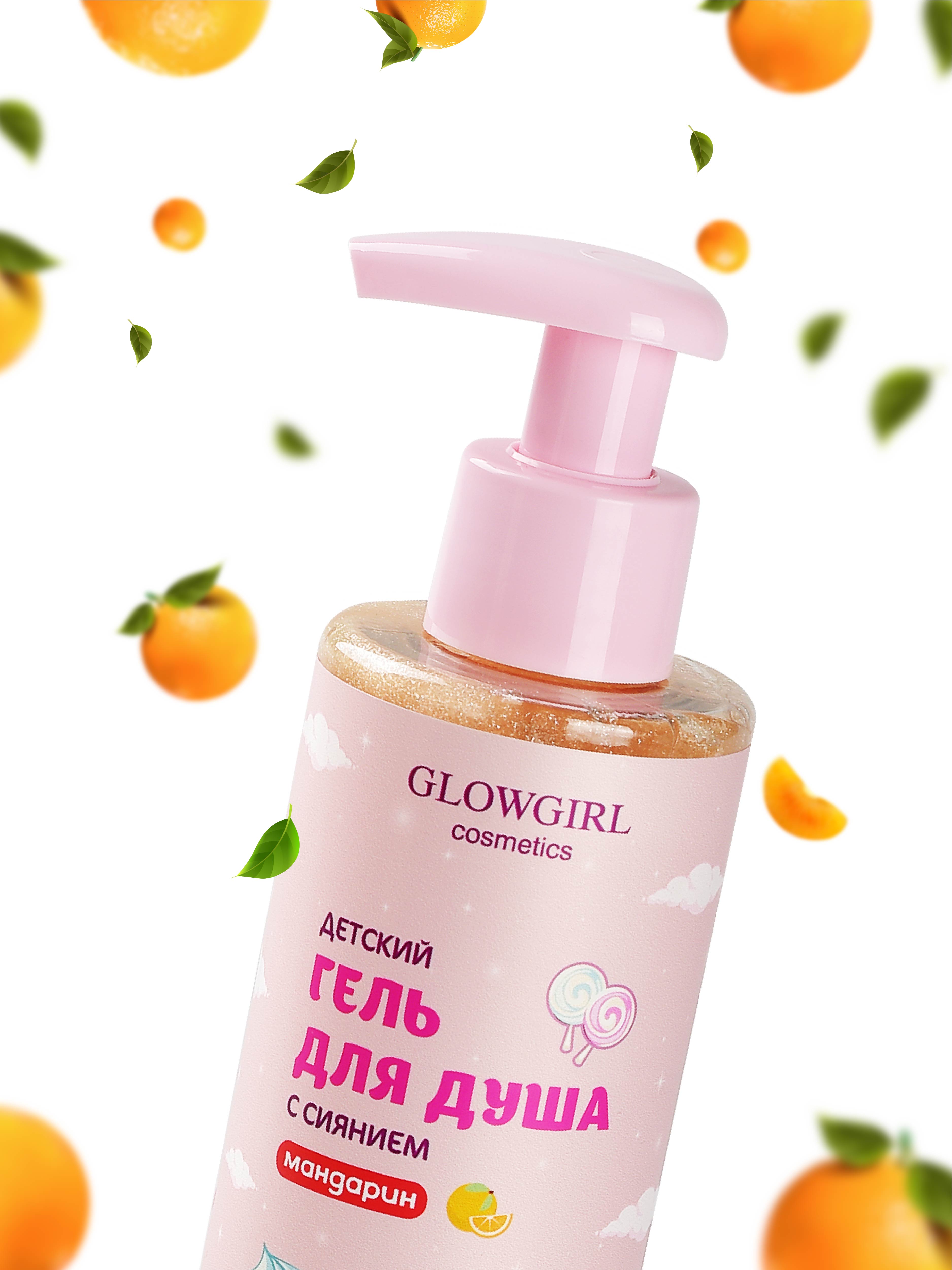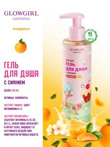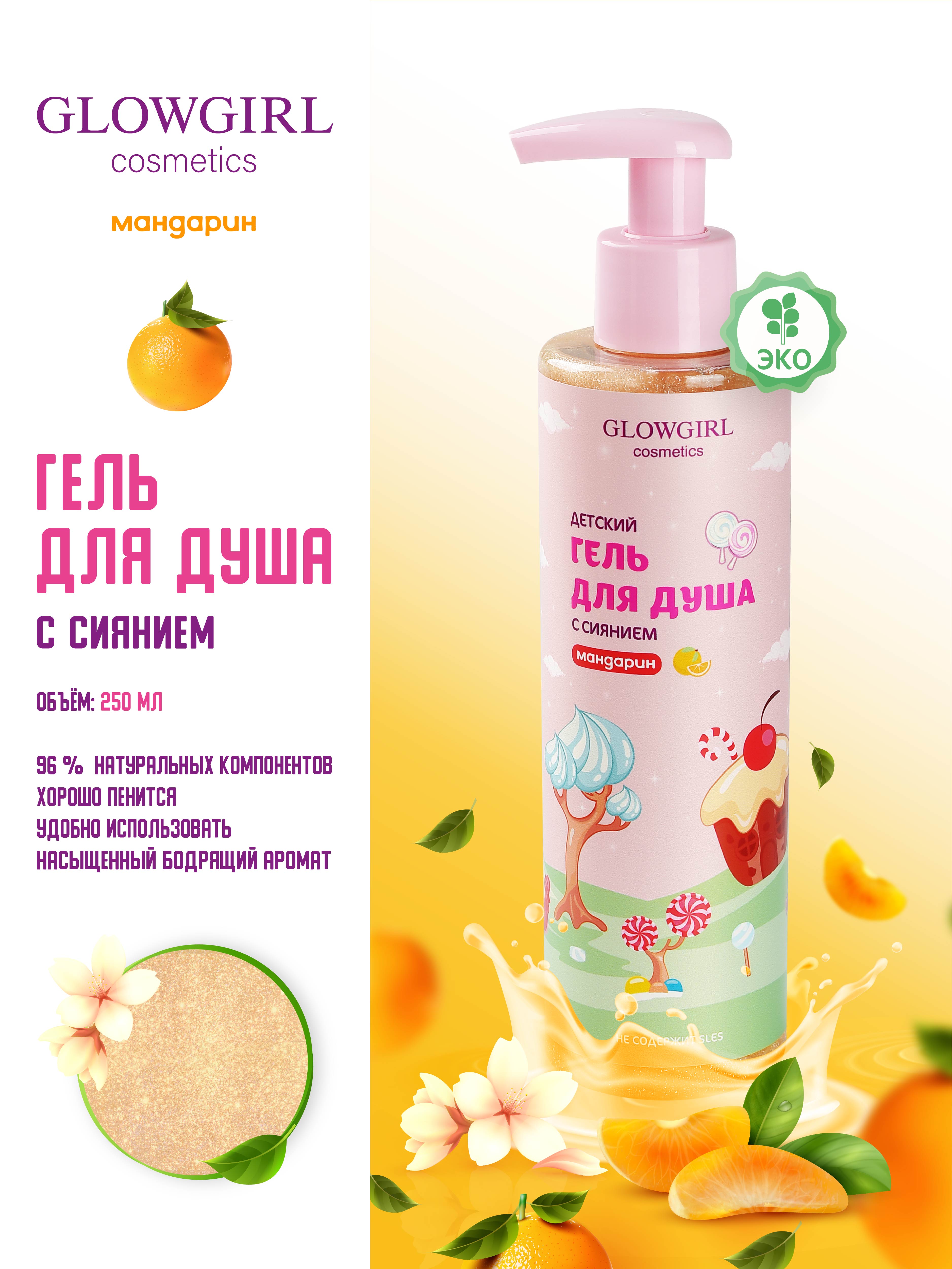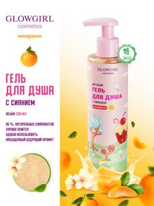 Glowgirl. Гель для душа увлажняющий золотое сияние детский Мандарин, 250мл. ЭКО продукт.Завораживающая золотая материя и искрящийся аромат сочного мандарина. Это удивительное сочетание подарит заряд бодрости и превратит купание в настоящее летнее приключение.