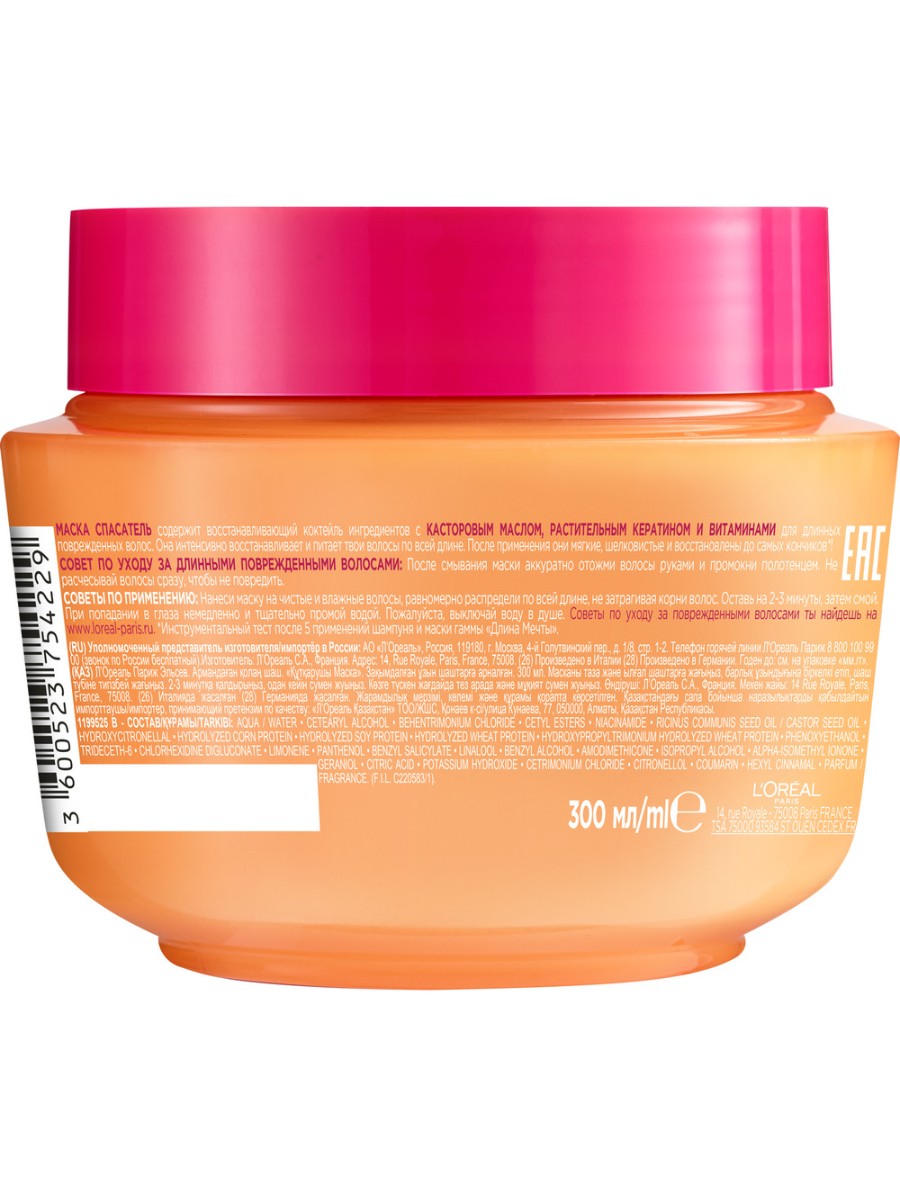 L`OREAL Elseve Маска для волос Длина Мечты для длинных поврежденных волос, с кератином, 300 мл