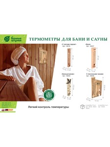 Размер: 21x4x1,5 см. Контролировать температуру в бане и сауне позволят специальные термометры. Мы предлагаем различные модели банных термометров. Каждая модель надежна, сделана из натурального материала - безопасного для здоровья человека, имеет креативное решение, которое добавит индивидуальности именно вашей бане. Русский человек любит ходить в баню, а особенно - париться. Однако полезно иметь измеритель, который позволяет следить за температурой в парной.