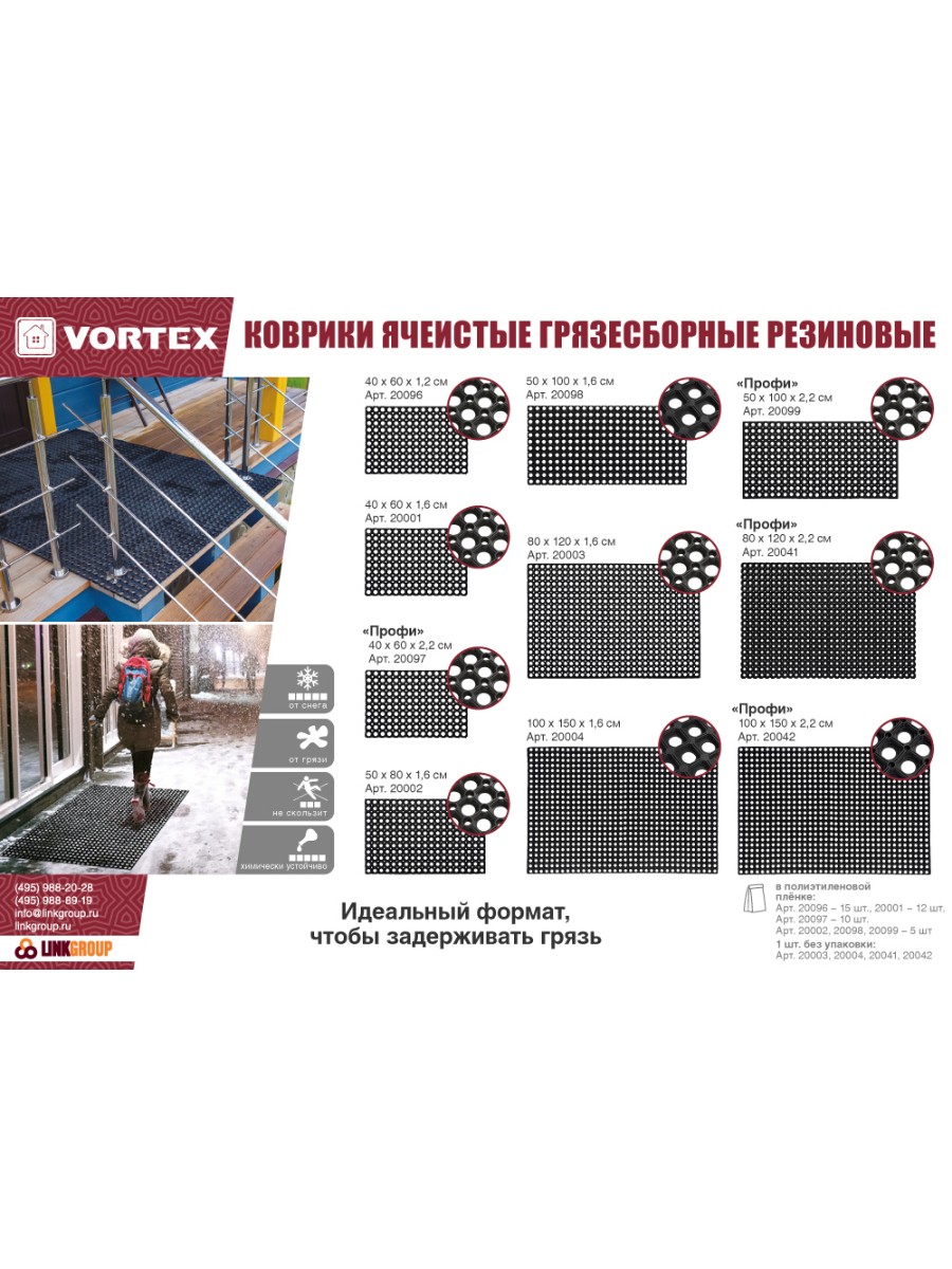 VORTEX Коврик ячеистый, грязесборный 50*100*1,6см