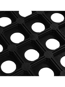 Структура коврика задерживает снег, крупные частицы грязи, препятствует скольжению. Устойчив к антигололедным реагентам и моющим средствам. Температурный диапазон: t° от + 50 до - 50 °С. Размер: 50 х 100 см, высота 1,6 см.