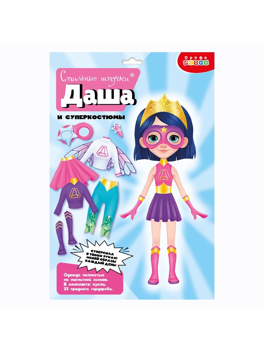 В нашей серии «Игры на магнитах» 3 игры с разными куколками. Наряды из этих наборов легко комбинировать, создавая интересные образы и истории. Лёгкий и компактный набор «Даша и суперкостюмы» идеален для игры дома или в дороге.