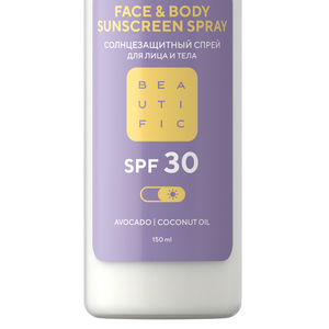 BEAUTIFIC Face&Body Sunscreen Spray Солнцезащитный спрей для лица и тела SPF 30 150 мл