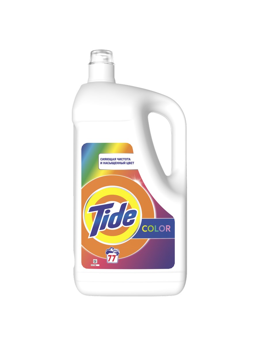 Гель для стирки Tide Color 5005 мл предназначен для стирки цветного и белого белья. Жидкий порошок Tide Color прекрасно очищает, бережно воздействует на ткань и придает приятный аромат вещам. Гель для стирки белья Tide Color дозируется непосредственно в барабан стиральной машины. Благодаря этому активные вещества мгновенно вступают в контакт с водой, эффективно удаляя загрязнения даже на коротких циклах и в холодной воде, не оставляя после стирки следов.Преимущества жидкого средства для стирки Tide Color: