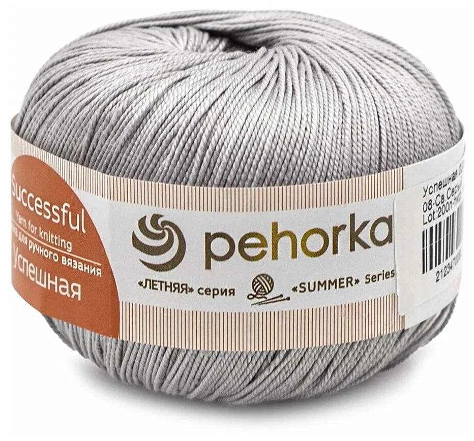 Пряжа ПЕХОРКА Успешная 220м/50г цвет 08-Светло Серый