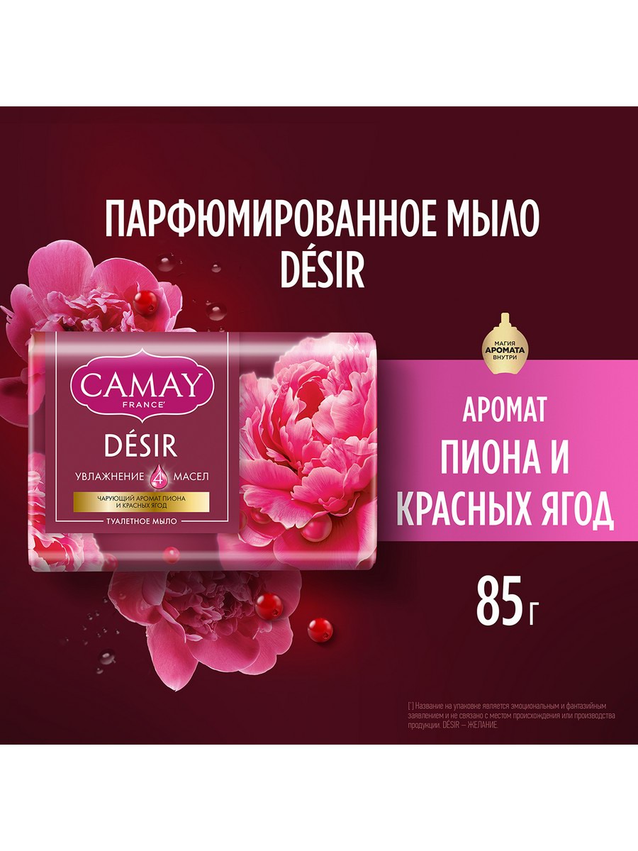CAMAY Мыло для рук Desir Пион и красные ягоды кусковое твердое туалетное 85гр