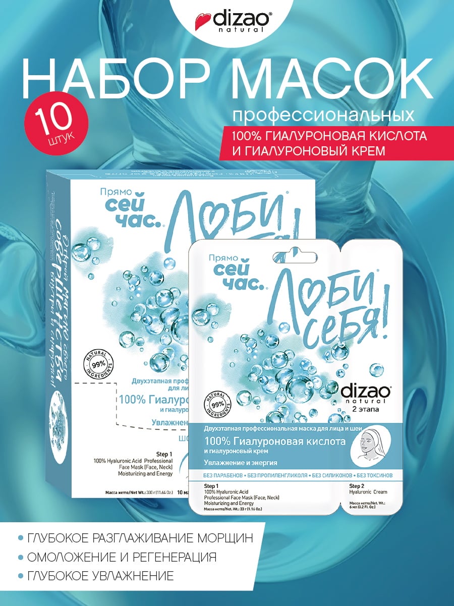 DIZAO Набор Маска двухэтапная профессиональная для лица и шеи 100% Гиалуроновая кислота и гиалуроновый крем, 10 штук