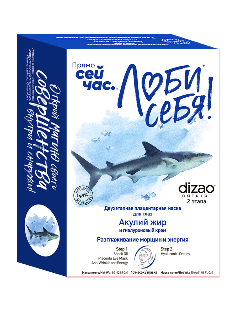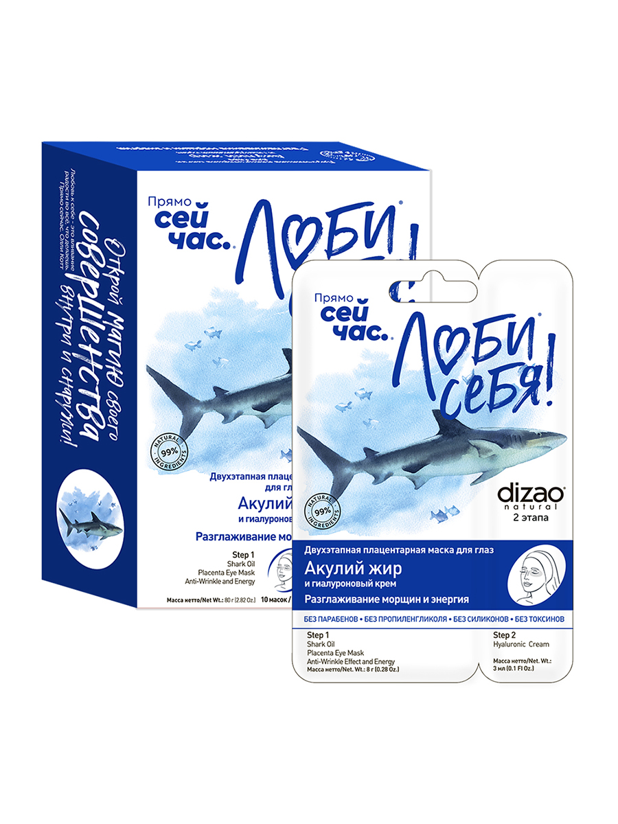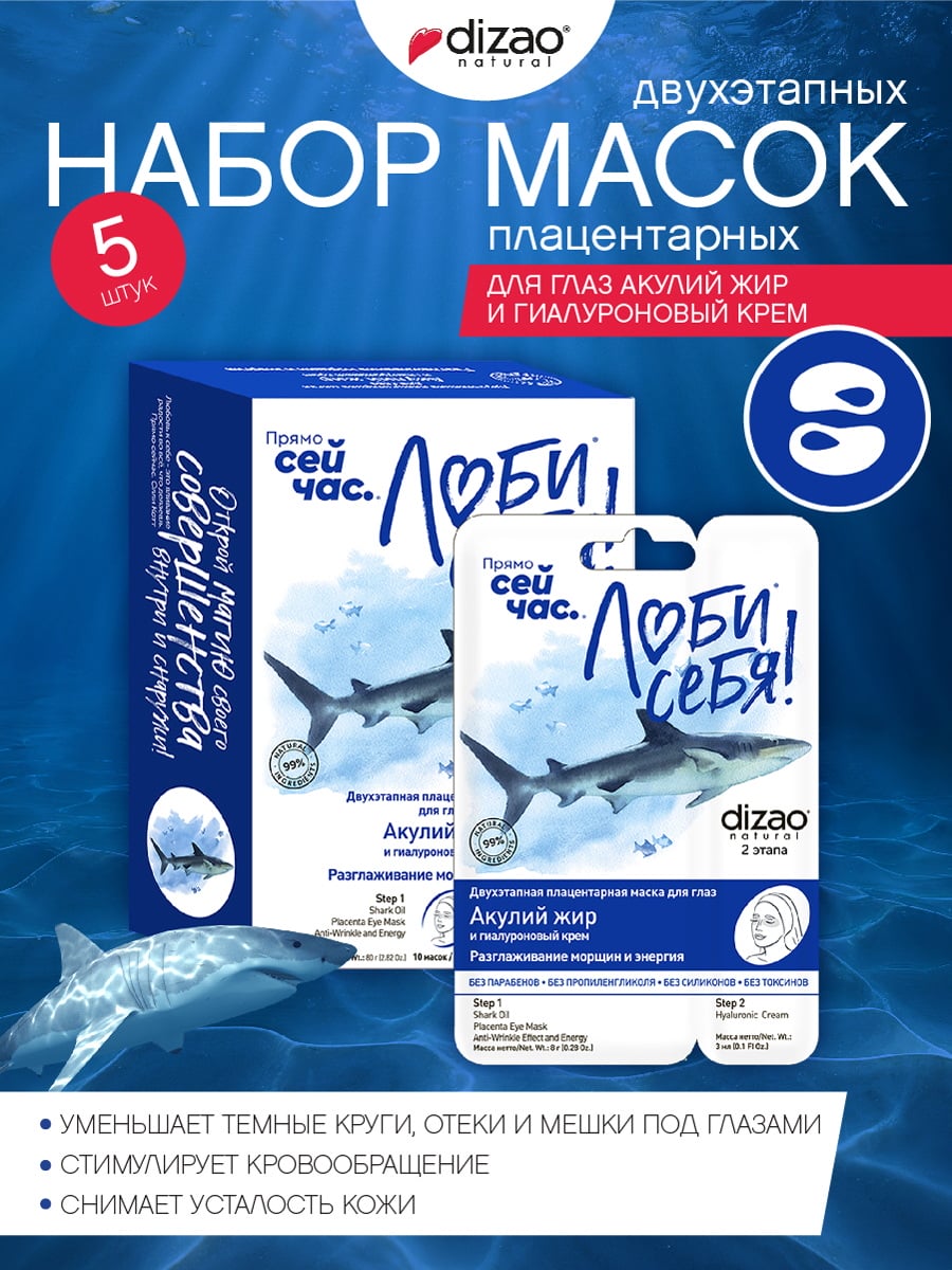 DIZAO Набор Маска двухэтапная плацентарная для глаз Акулий жир и гиалуроновый крем, 10 штук