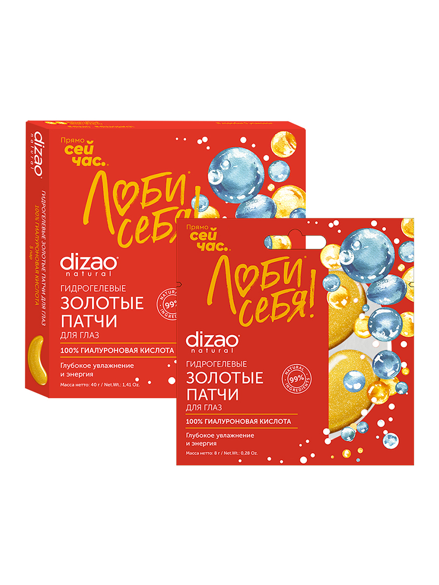 DIZAO Набор Патчи для глаз золотые гидрогелевые 100% Гиалуроновая кислота, 5 пар