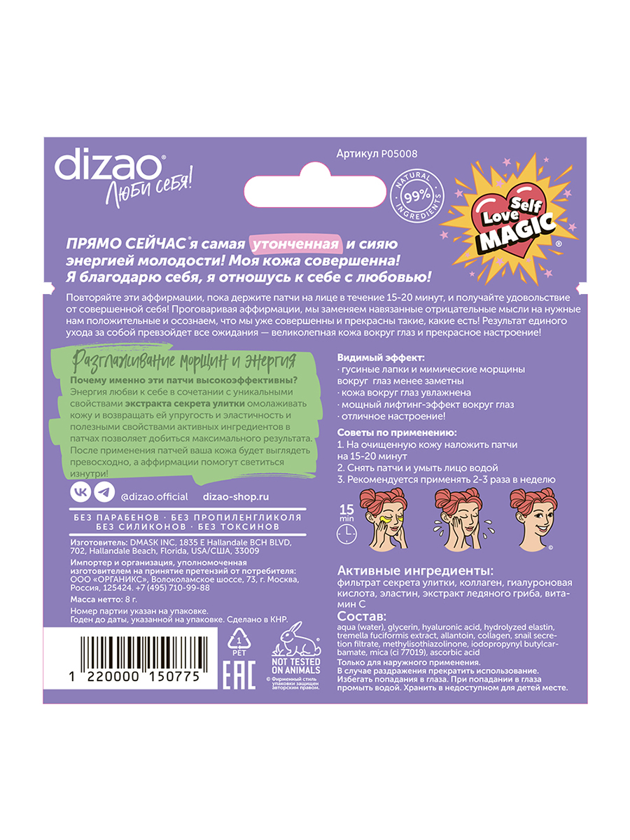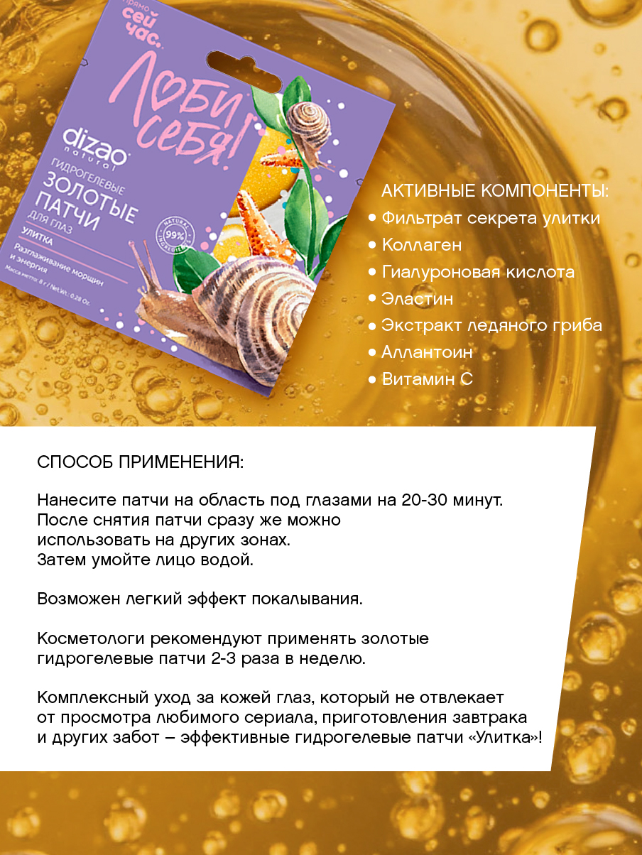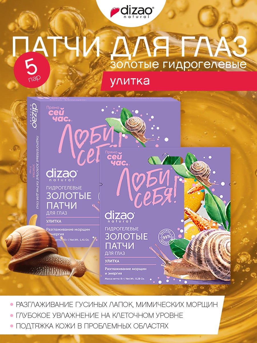 DIZAO Набор Патчи для глаз золотые гидрогелевые Улитка, 5 пар