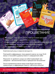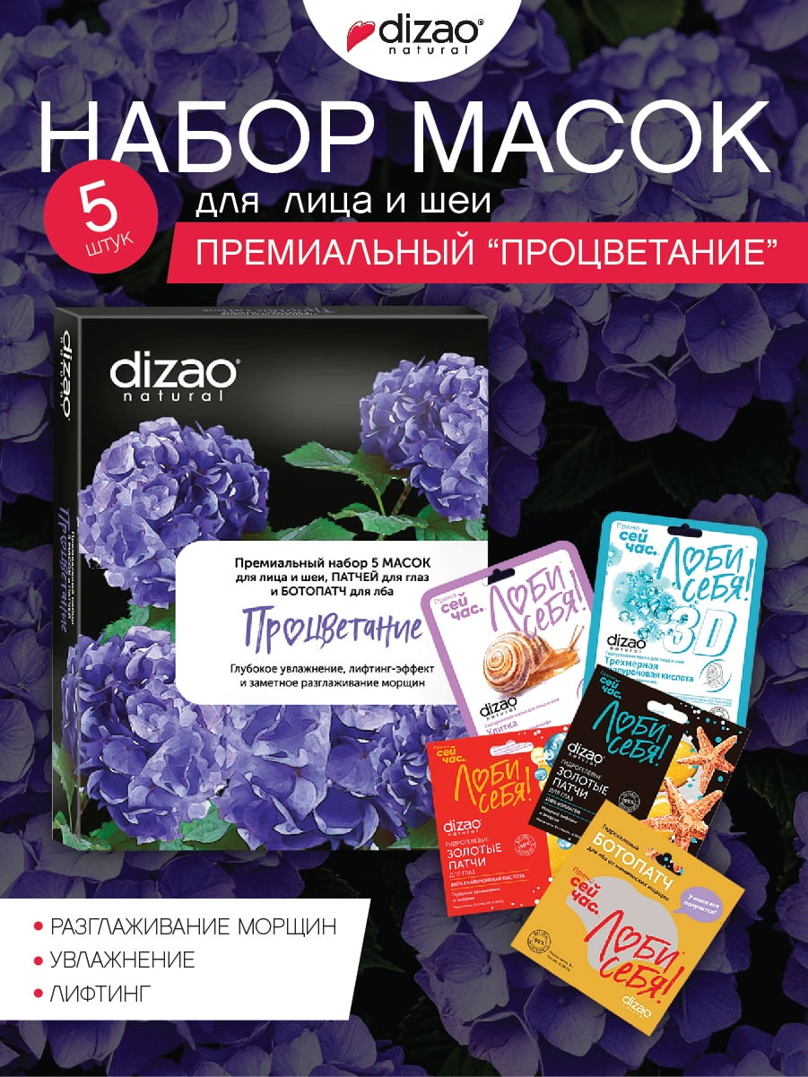 DIZAO Набор премиальный "Процветание" 5 масок (2 маски для лица и шеи, 2 патчей для глаз и 1 ботопатч для лба) для увлажнения, лифтинга, разглаживания