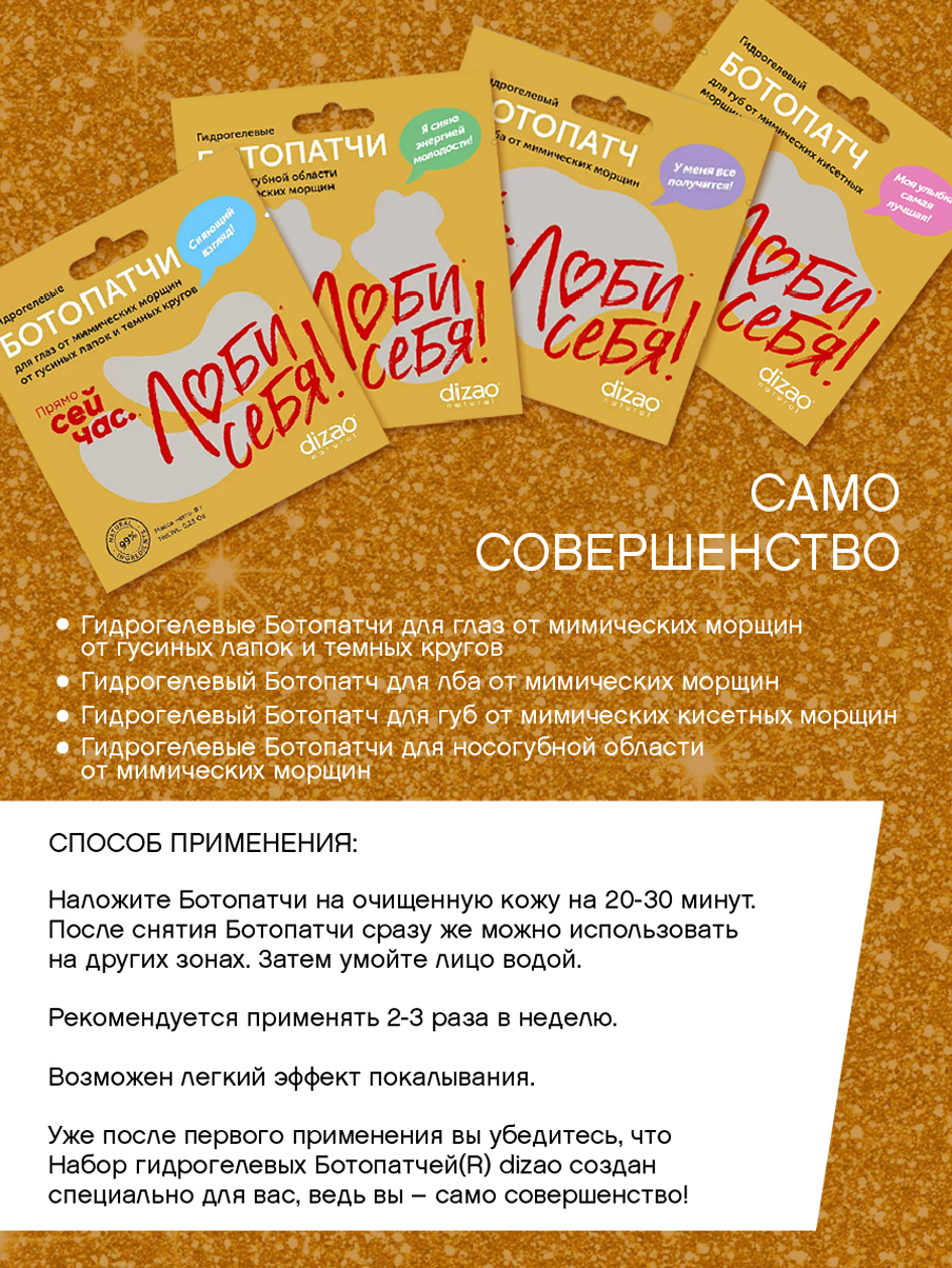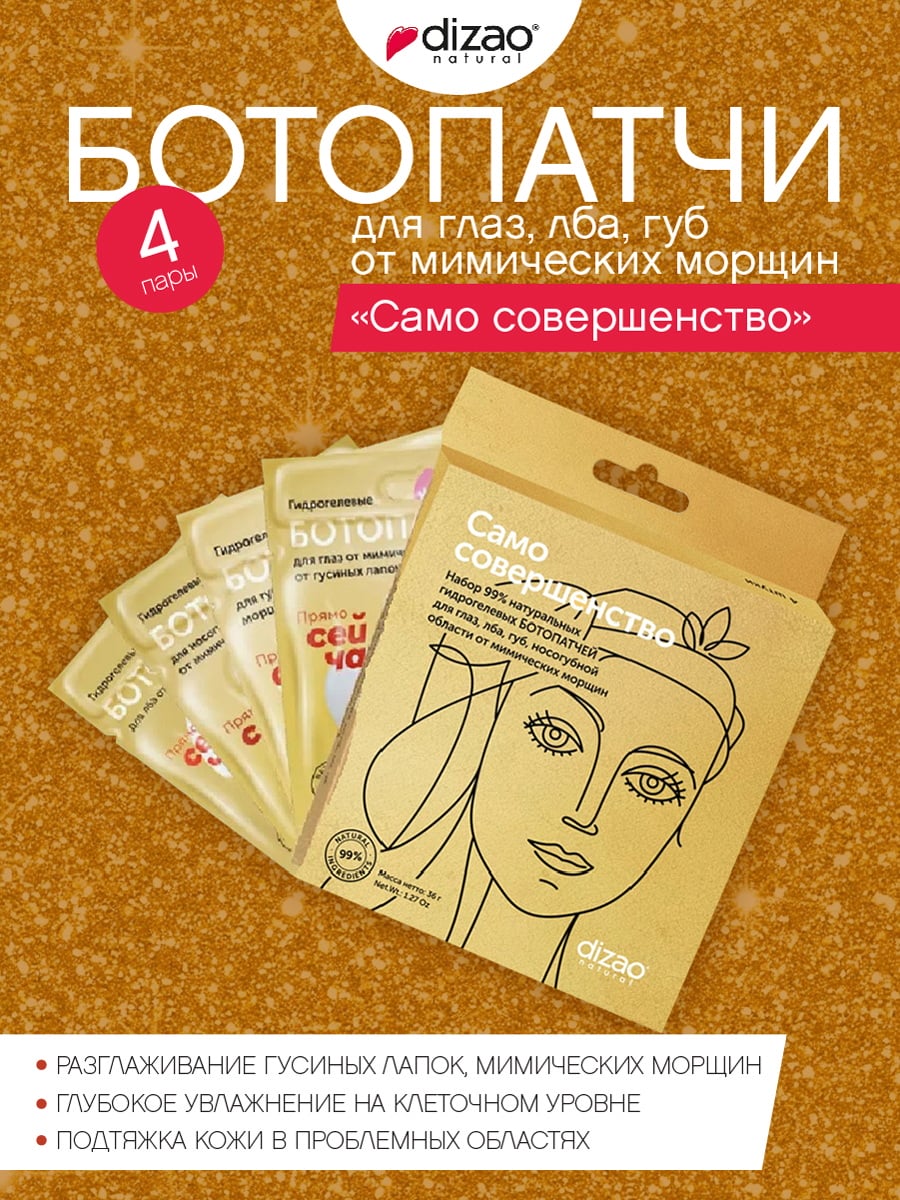 DIZAO Набор Ботопатчи гидрогелевые «Само совершенство» (для глаз, лба, губ, носогубной области) от мимических морщин, 4 пары