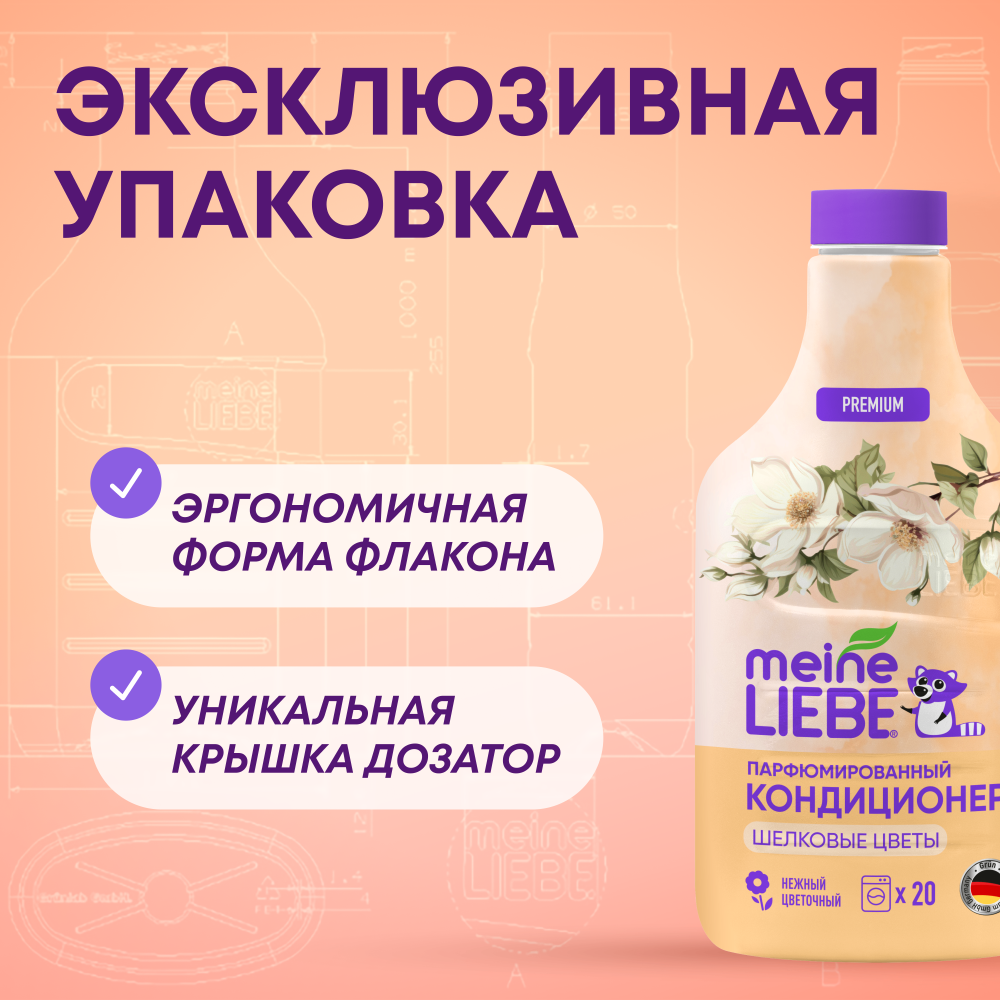Meine Liebe представляет обновленную серию средств для стирки высшей категории.В серии парфюмерных кондиционеров для белья использованы специальные смягчающие компоненты и премиальные европейские отдушки. Многослойная цветочная композиция каждого кондиционера Meine Liebe подобрана таким образом, чтобы мягкий аромат сохранялся на одежде и белье надолго после стирки.