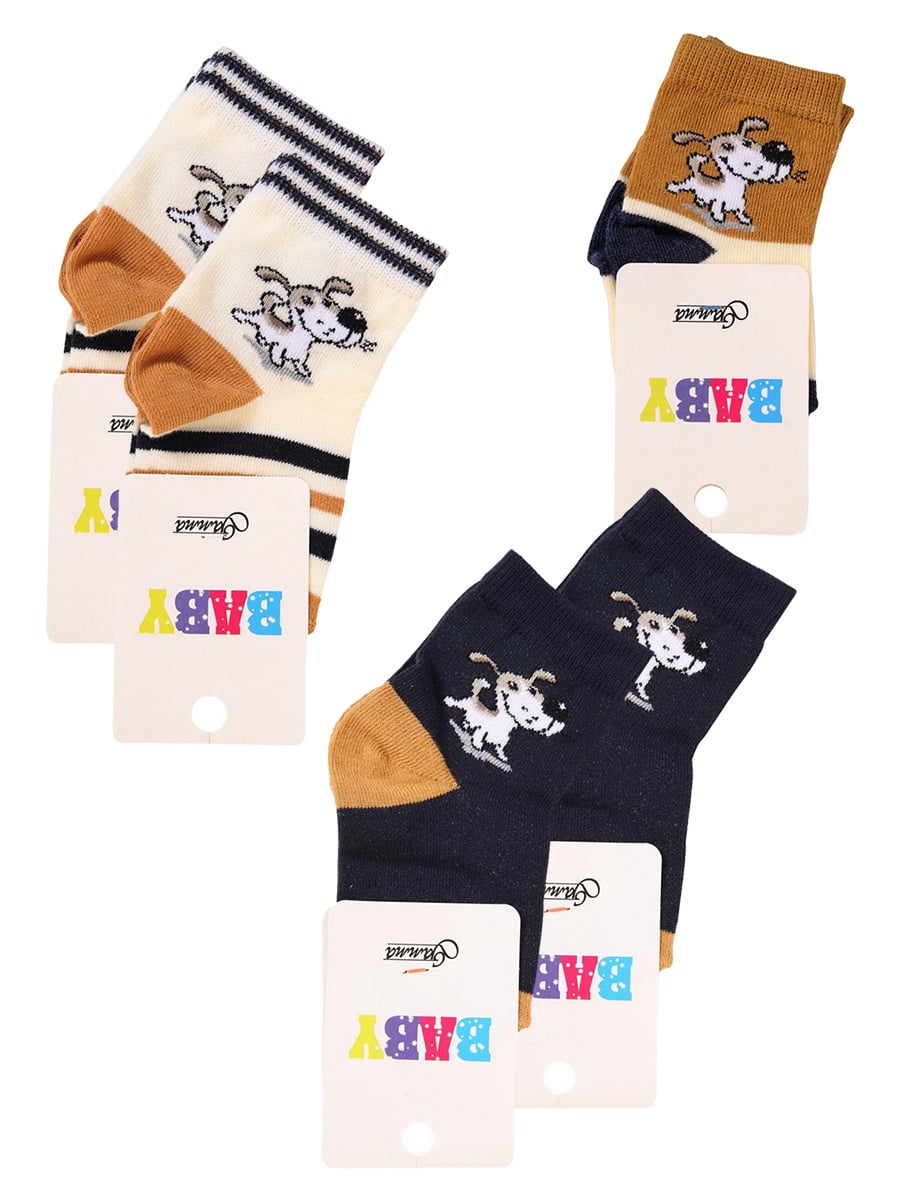 Носки детские Гамма для мальчика демисезонные с компьютерным рисунком "собачка" (в 3-х рисунках) размер 11-12 кремовые