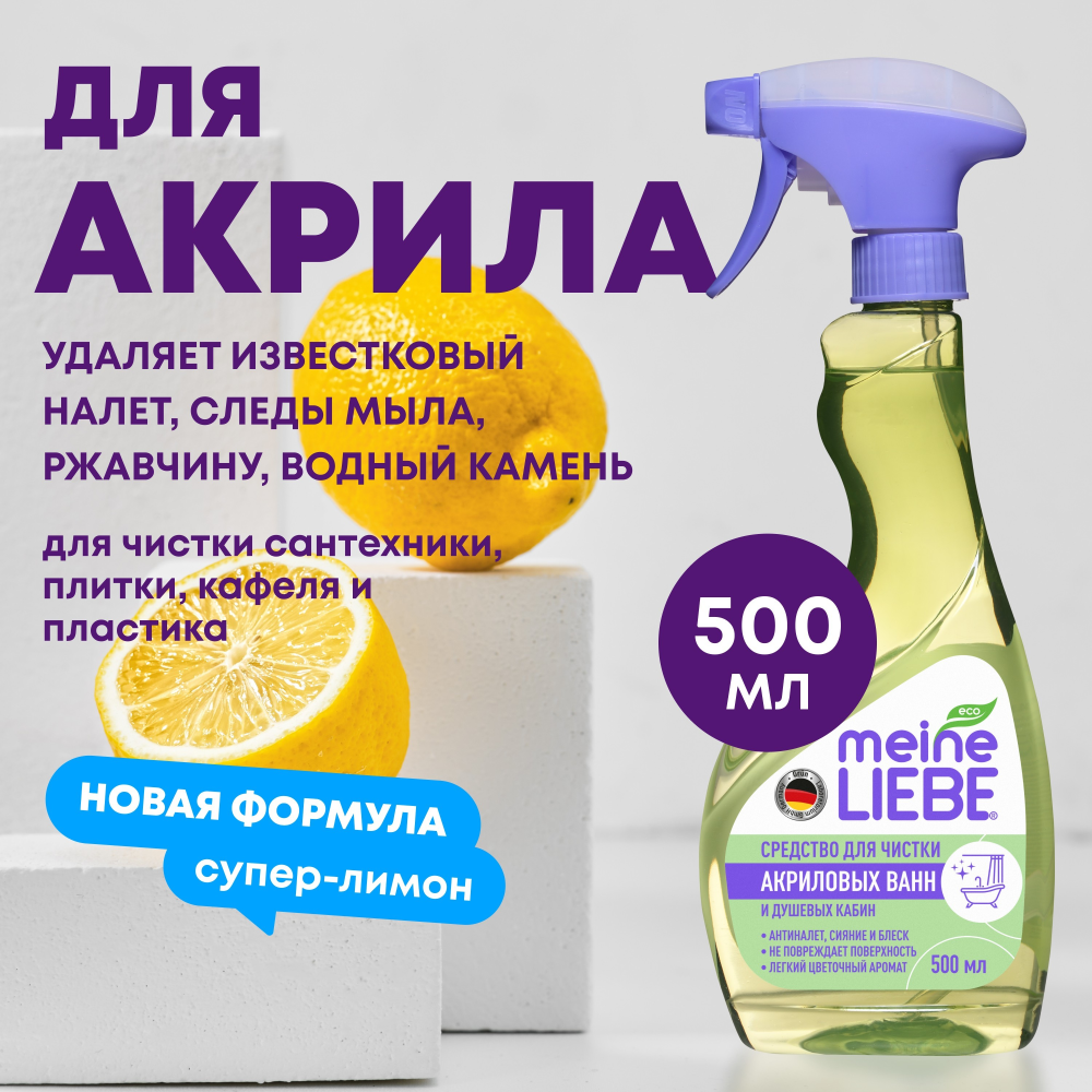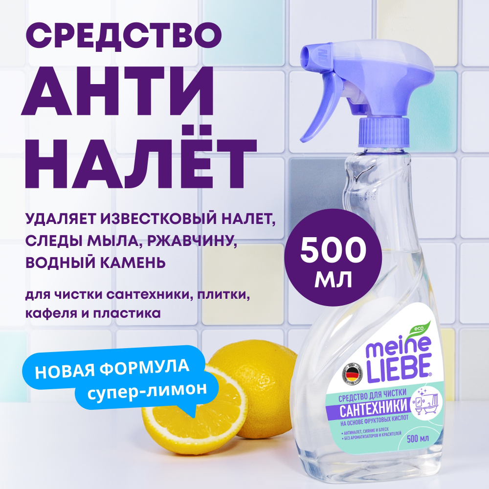 2. MEINE LIEBE Чистящее экологичное средство сантехники- ванн, раковин, душевых кабин без хлора на основе фруктовых кислот 500мл: >30%: вода деминерализованная; 5-15%: фосфорная кислота, лимонная кислота; < 5%: НПАВ, яблочная кислота, ароматизатор.