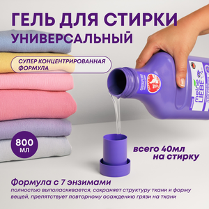5. Гель для стирки универсальный с пятновыводителем, концентрат, 800мл