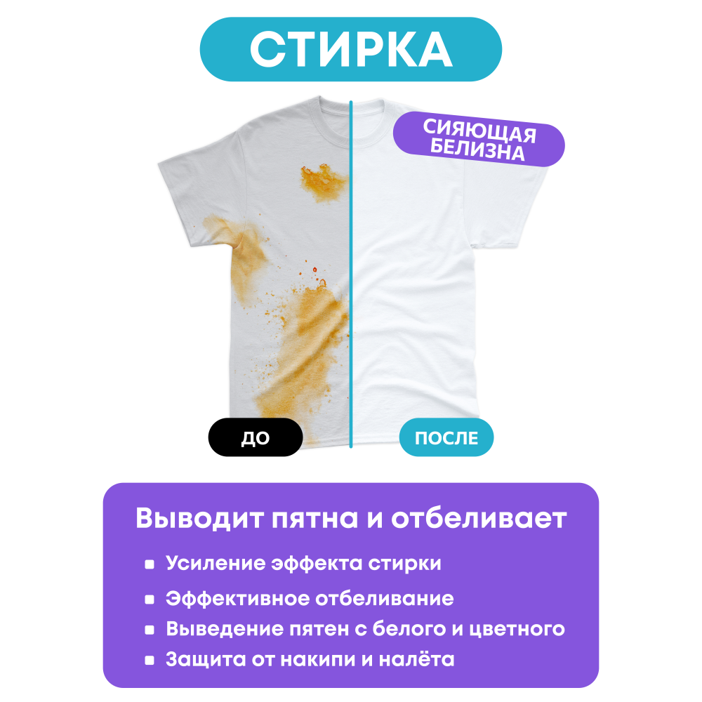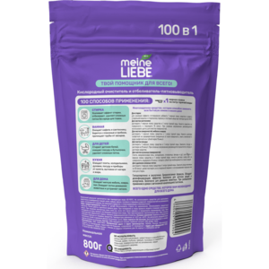 Кислородный пятновыводитель MEINE LIEBE - универсальное средство для всего, которое способно заменить всю бытовую химию в доме. Чудо очиститель имеет более 100 способов применения для всего дома:Отстирывает одежду и текстиль: для цветного, белого и детского белья работает как: усилитель для стирки, удаляет сложные пятна с одежды (пятна грязи, крови, травы, жира, вина, пищевых продуктов, косметики, органических загрязнений), устраняет запахи, отбеливает, очищает обувь (текстильные кроссовки), защищает от налета и накипи стиральную машинку. Подходит для стиральных машин и ручной стирки.