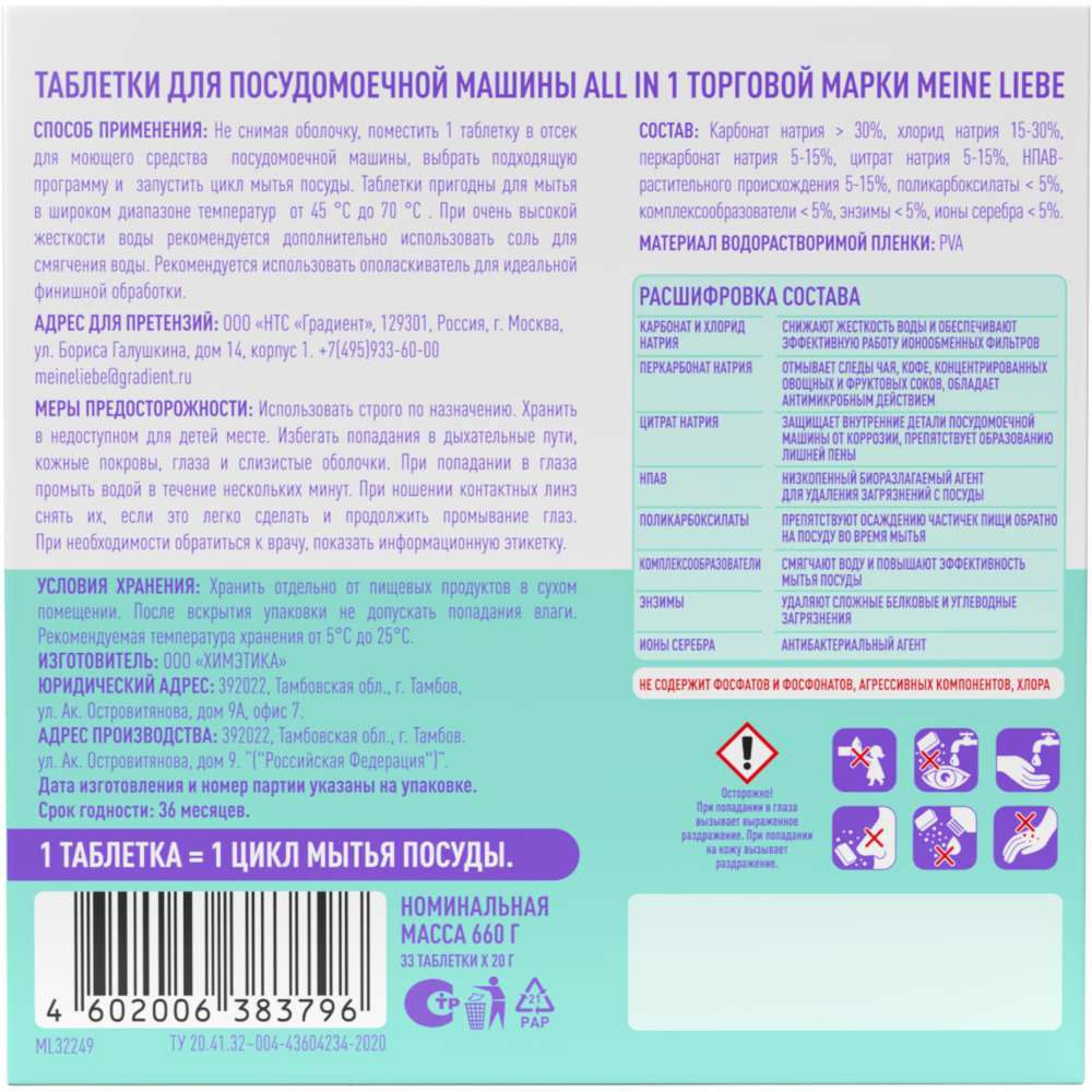 MEINE LIEBE All in 1 Таблетки для посудомоечных машин 30шт+3шт