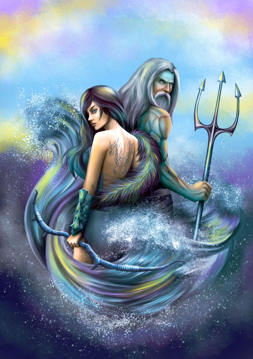 - Дизайн: детализированное изображение Посейдона в сине-золотых тонах