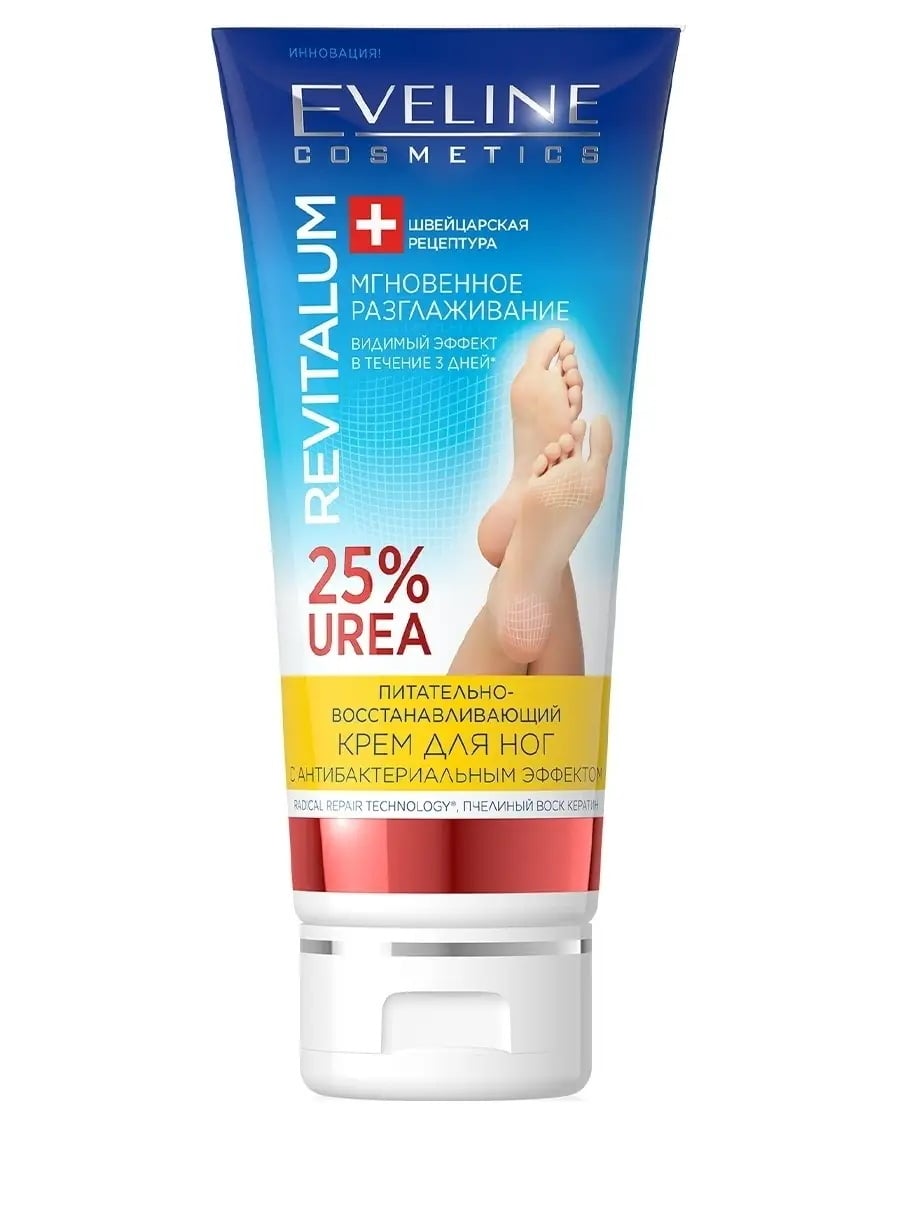 Усовершенствованная формула крема с высоким содержанием 25% UREA и уникальным регенерирующим комплексом Radical Repair Technology эффективно восстанавливает потрескавшуюся, сухую кожу пяток и стоп, возвращая ей гладкость и мягкость. Оказывает эффективное антибактериальное действие. Благодаря содержанию пчелиного воска и кератина, интенсивно питает, разглаживает и заметно улучшает состояние кожи. Обеспечивает оптимальный уровень увлажнения и оставляет на поверхности кожи невидимый липидный слой, защищающий ее от высыхания и огрубения. Экстракт мяты приятно освежает.