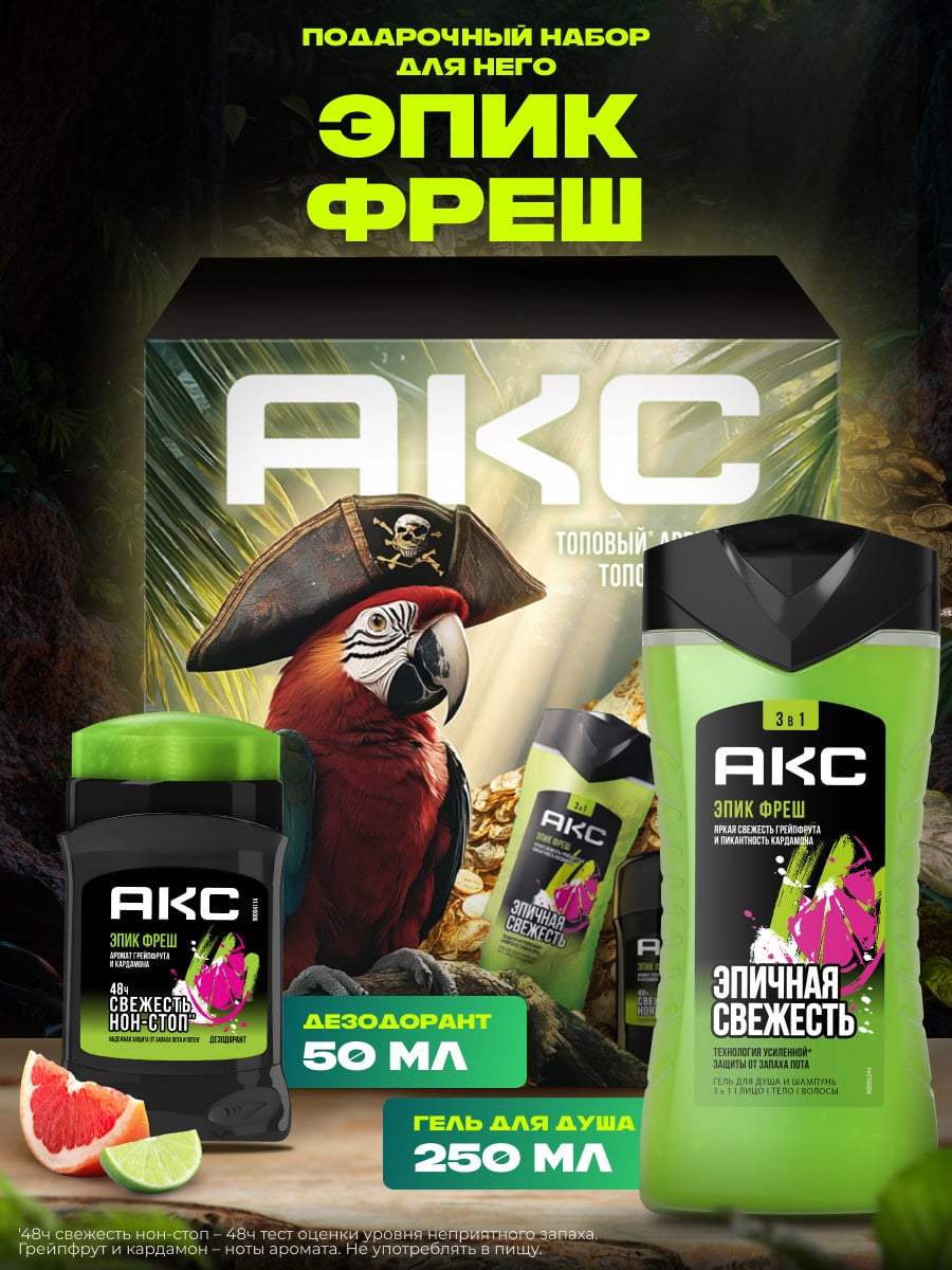 Подарочный набор Акс Эпик Фреш Гель д/душа+шамнунь 3в1 250мл и Дезодорант-стик 50 мл
