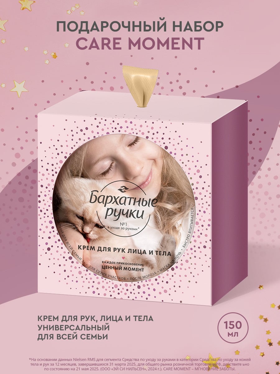 Подарочный набор Бархатные Ручки CARE MOMENT Крем д/рук,лица и тела 150 мл, 4 дизайна в ассортименте