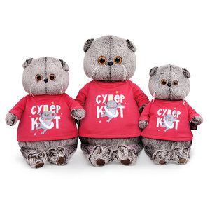 Кот Басик в лонгсливе с принтом "Супер кот" 22 см