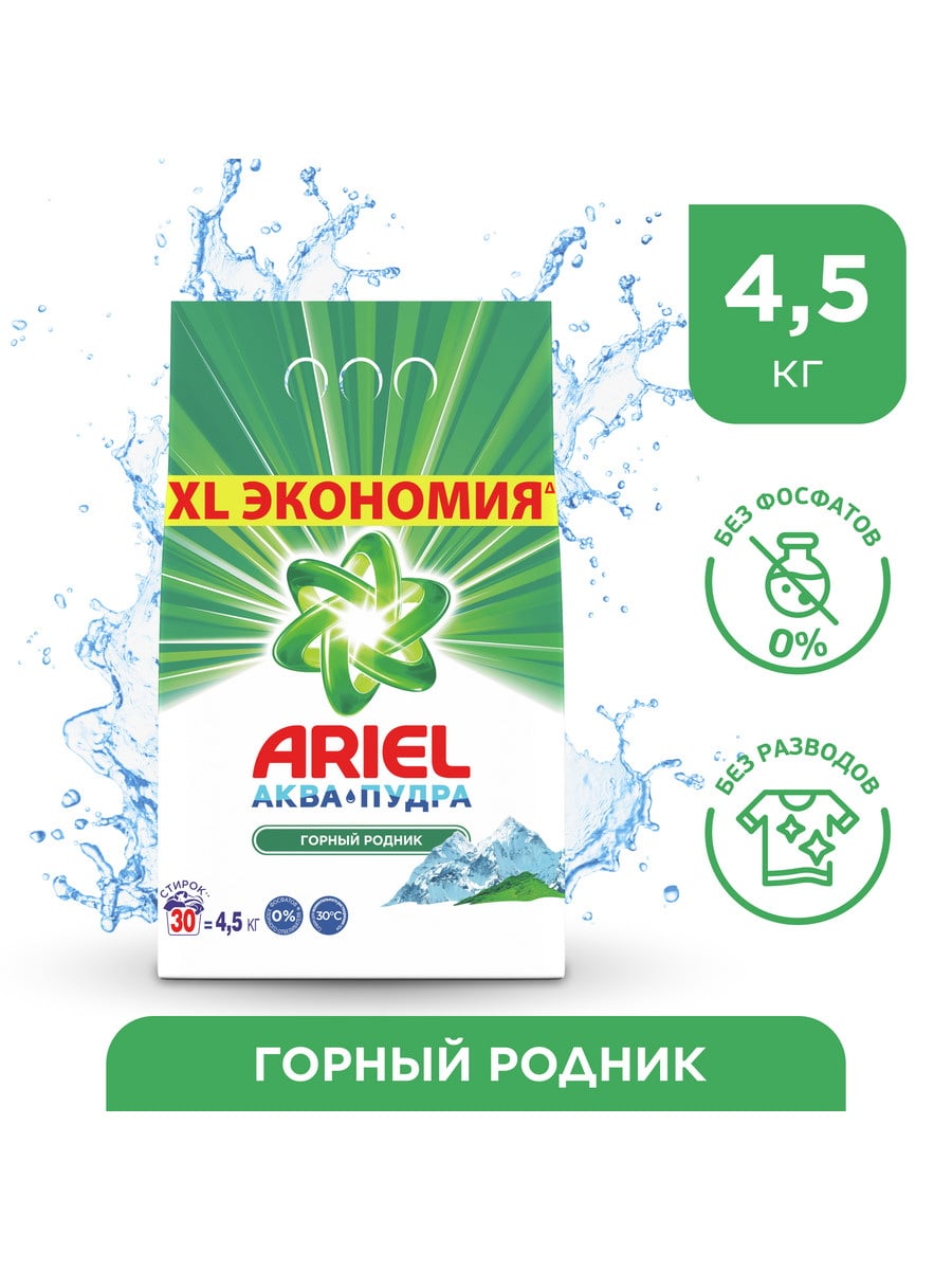 Ariel Color Порошок стиральный автомат Аква-Пудра Горный родник 4,5кг