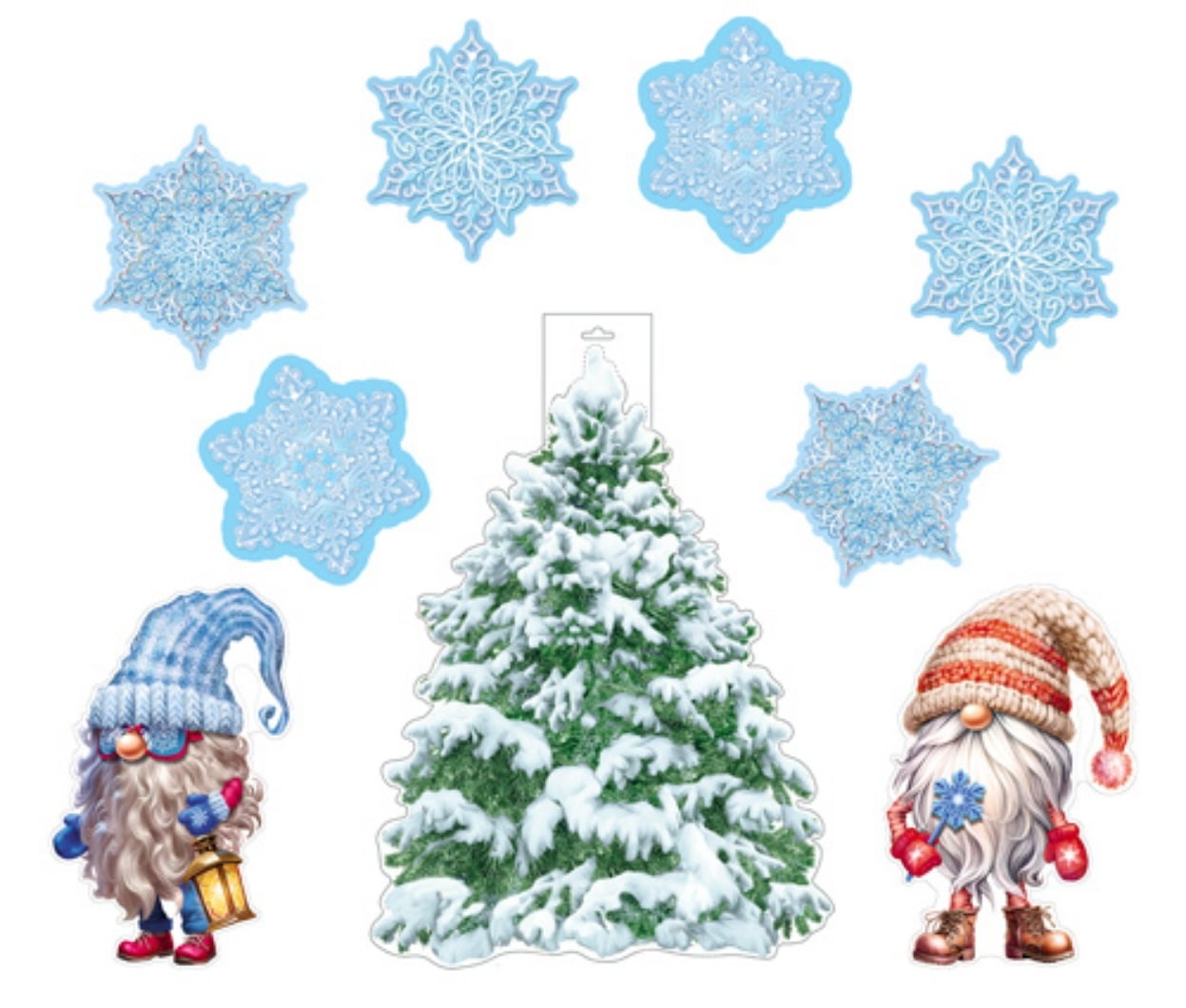 - ФМ1-16571 Плакат вырубной А4. Гномик со снежинкой в руке (двухсторонний, ВД-лак);
