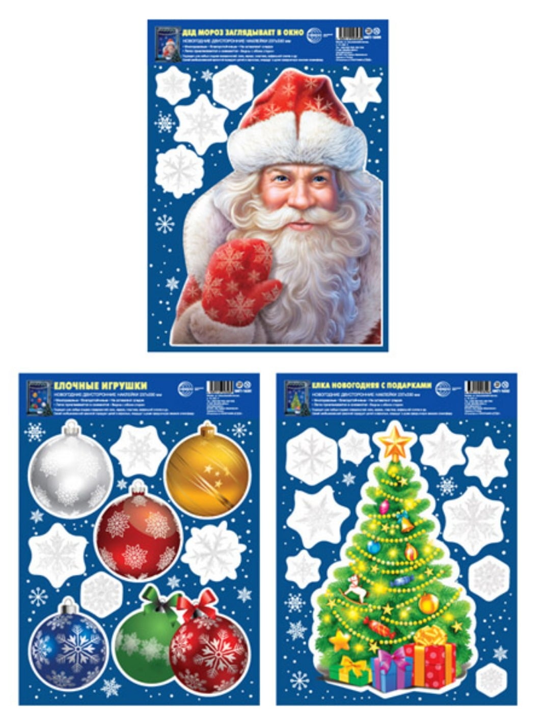 Наклейки новогодние на окна в комплекте Дед Мороз! Он подарки нам принес! (многоразовые, видны с обеих сторон), формат А4