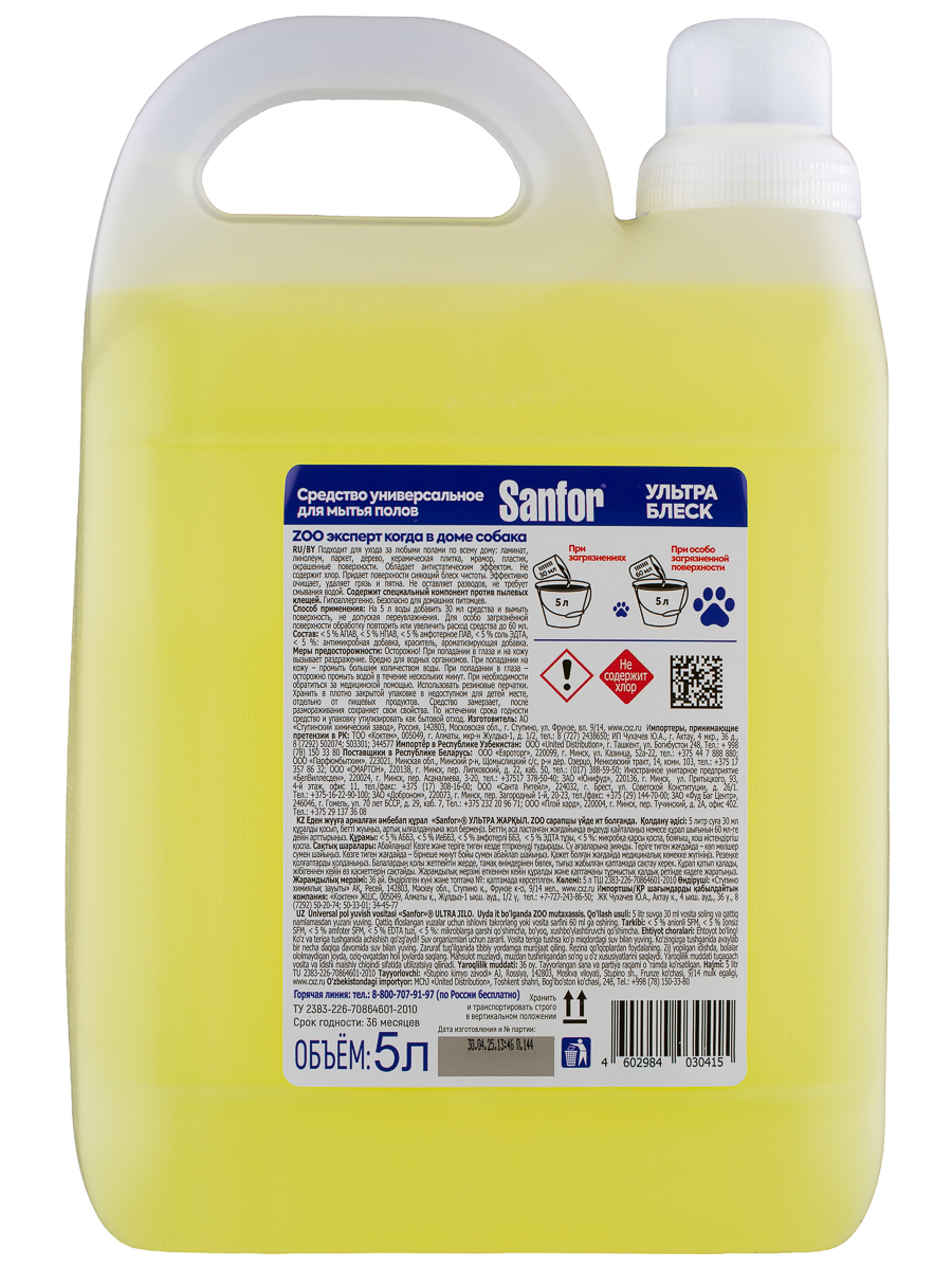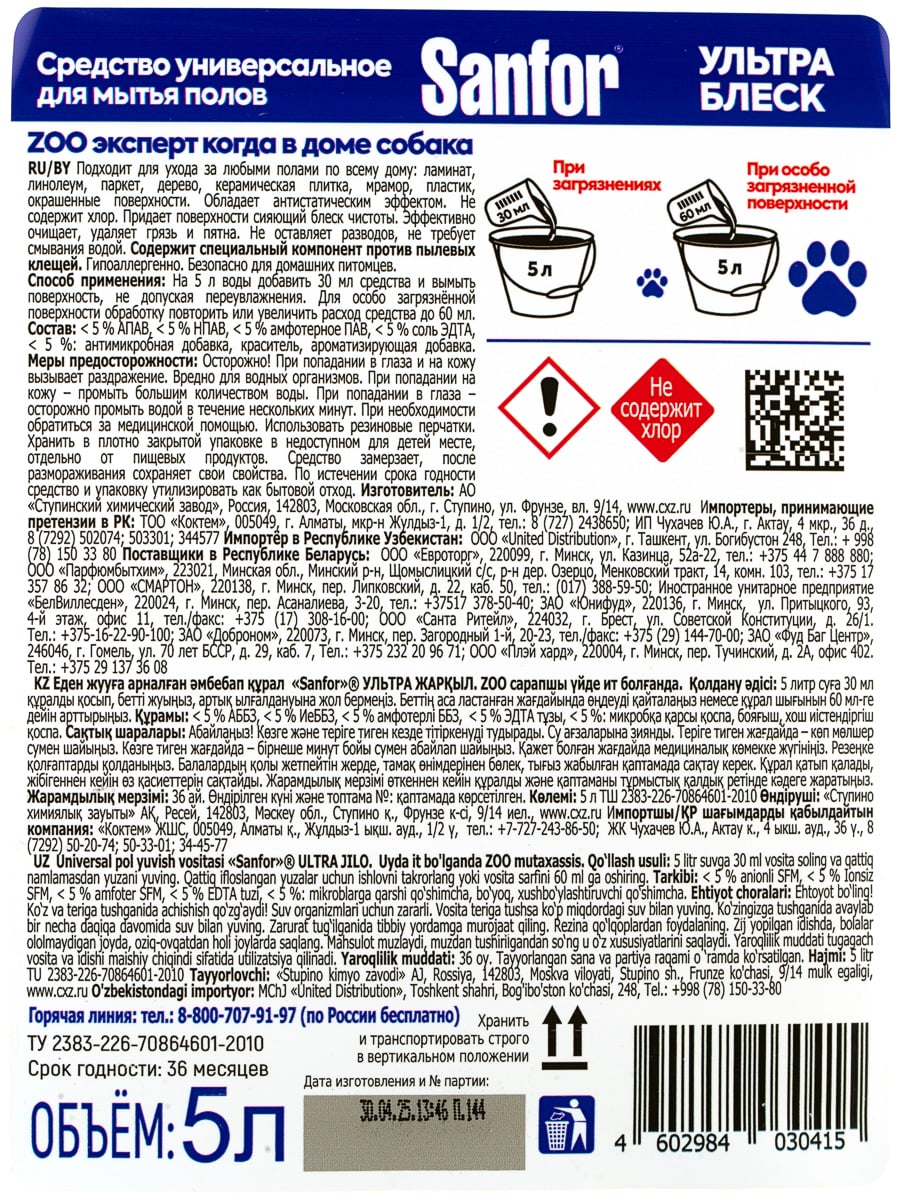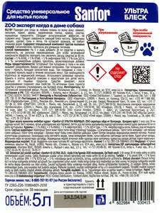 SANFOR Средство для мытья полов УЛЬТРА БЛЕСК "ZOO эксперт Когда в доме собака", 5л