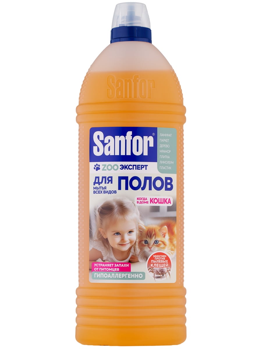 Sanfor Забота о Домашних Питомцах: Чистота и Свежесть в Вашем Доме!Универсальная моющая жидкость для полов Sanfor Забота о домашних питомцах – идеальное решение для эффективной и безопасной влажной уборки, созданная специально для заботы о вашем доме и ваших питомцах!