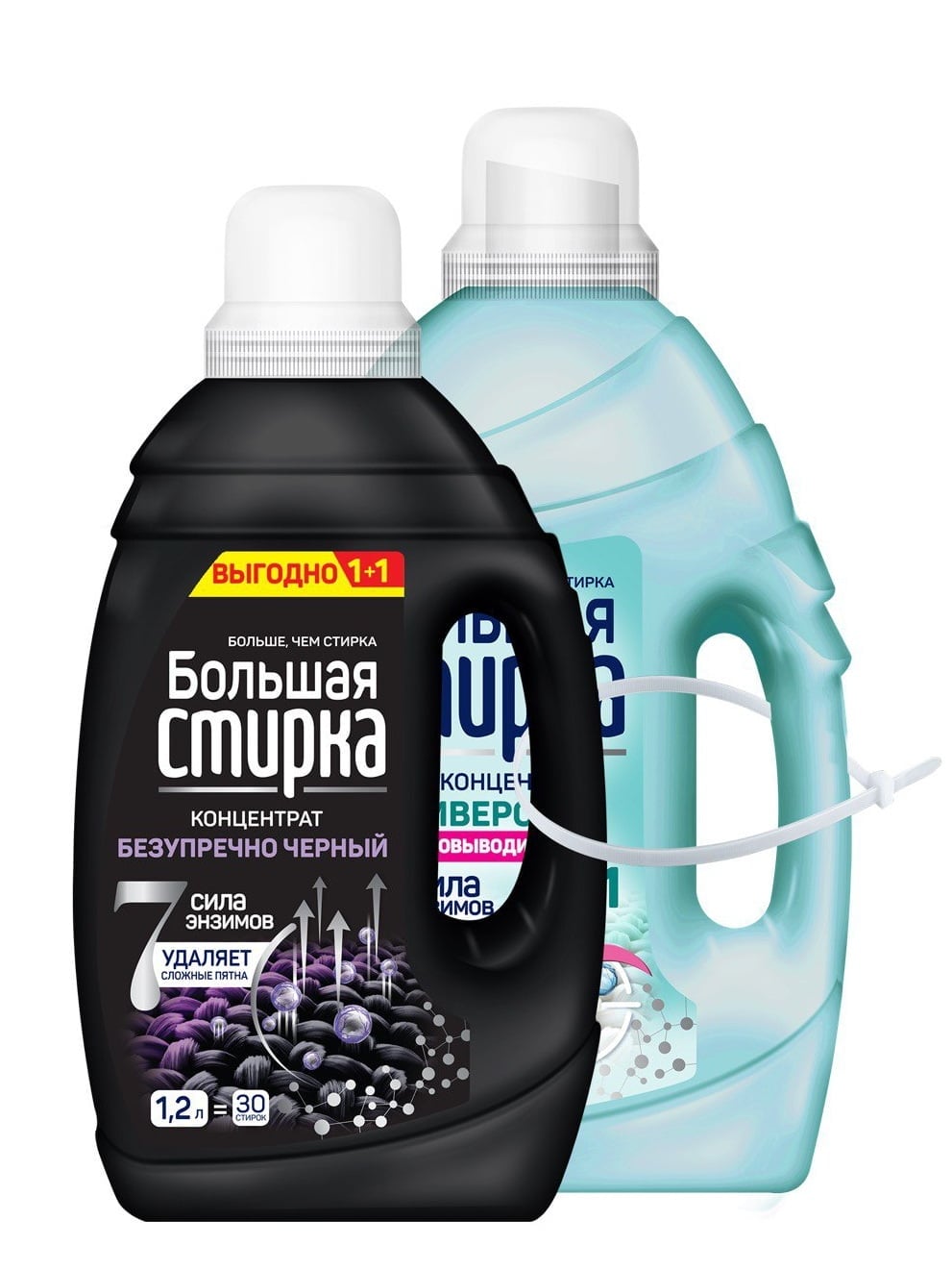 Набор БОЛЬШАЯ СТИРКА Гели для стирки Universal, 2 л + Безупречно черный, 1,2 л