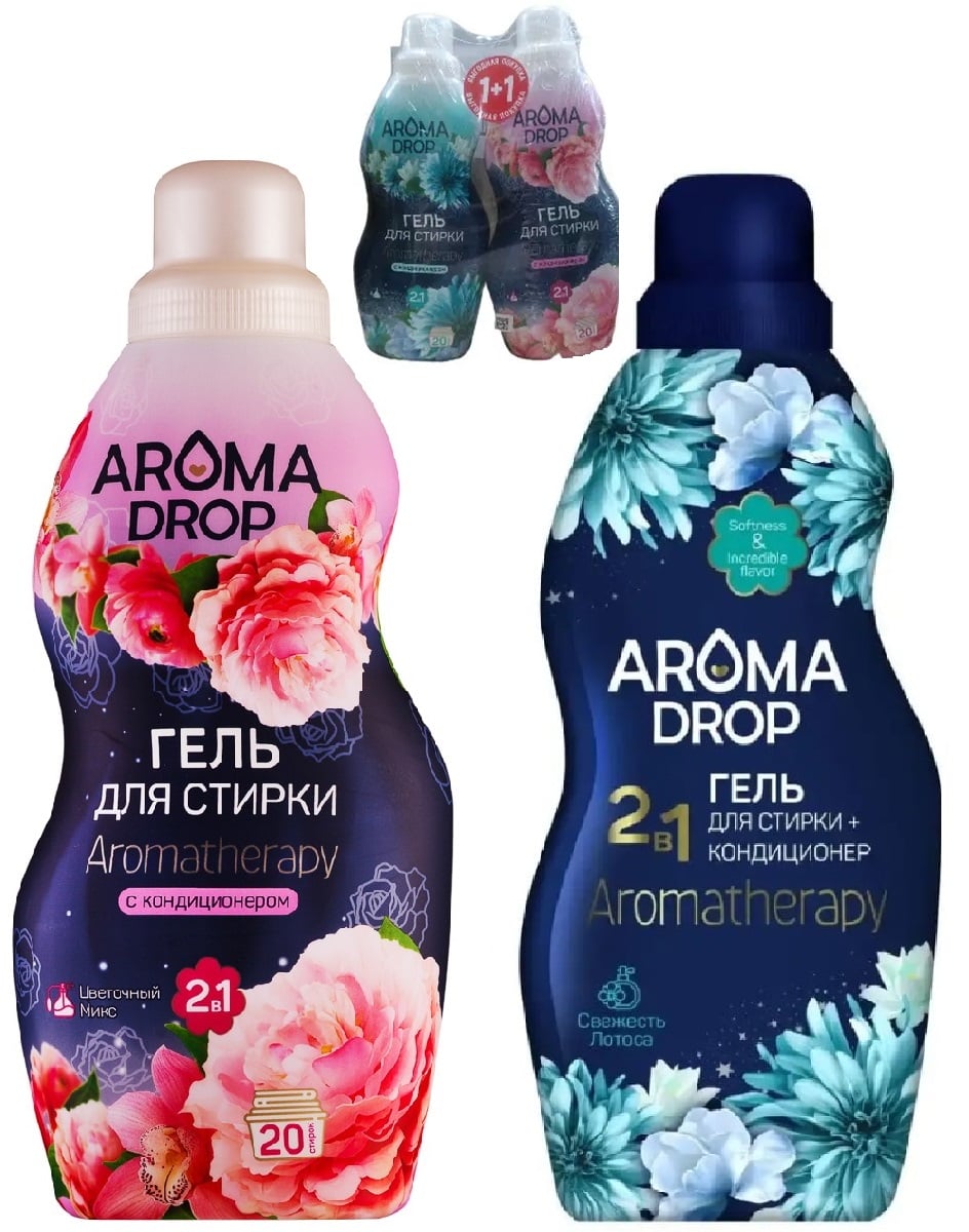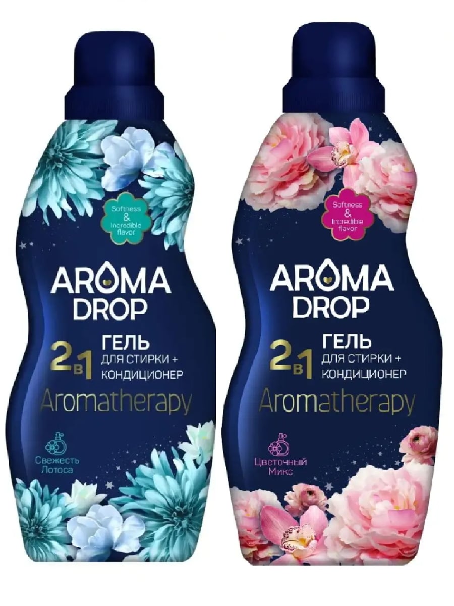 AROMA DROP Набор Гели для стирки Aromatherapy Свежесть лотоса, 1000 г + Цветочный микс, 1000 г