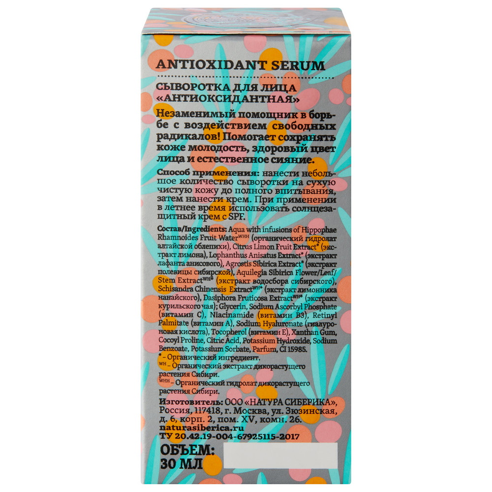 Сыворотка для лица «Антиоксидантная» Natura Siberica Oblepikha C-Berrica, 30 млОписание:
