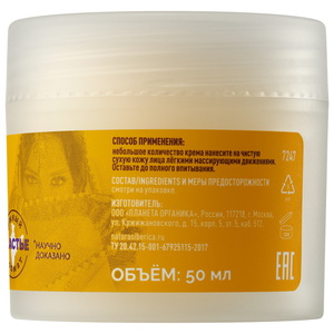 небольшое количество крема нанесите на чистую сухую кожу лица и шеи легкими массирующими движениями. Оставьте до полного впитывания.