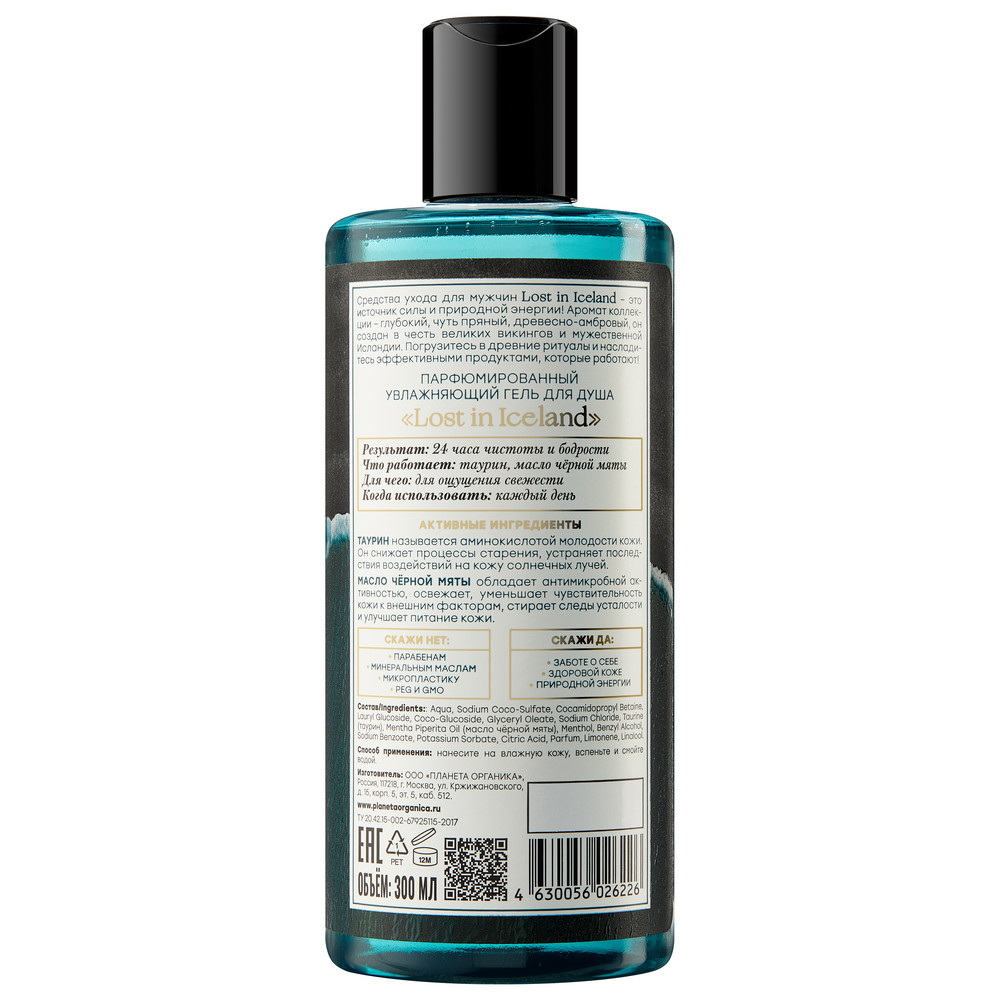Парфюмированный увлажняющий гель для душа PLANETA ORGANICA "Lost in Iceland", 300 млОписание: