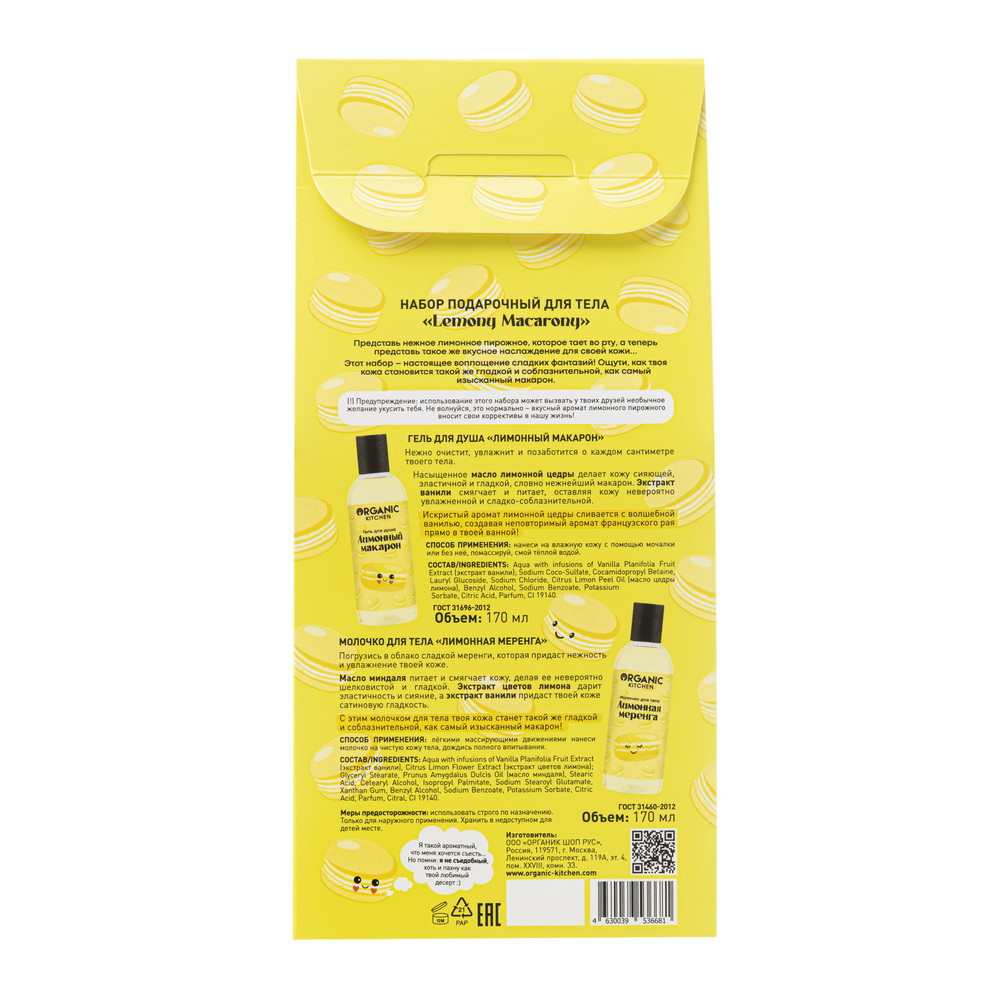 Подарочный набор Organic Kitchen для тела "Lemony Macarony" Гель для душа «Лимонный макарон», Молочко для тела «Лимонная меренга» 2х170 мл