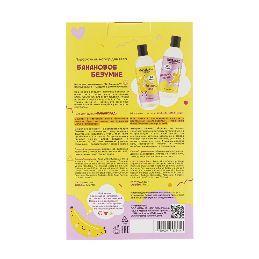 Подарочный набор Organic Kitchen для тела "Банановое безумие" Гель для душа «БАНАНОПАД», Молочко для тела «БАНАНОМАНИЯ», 2х170 мл