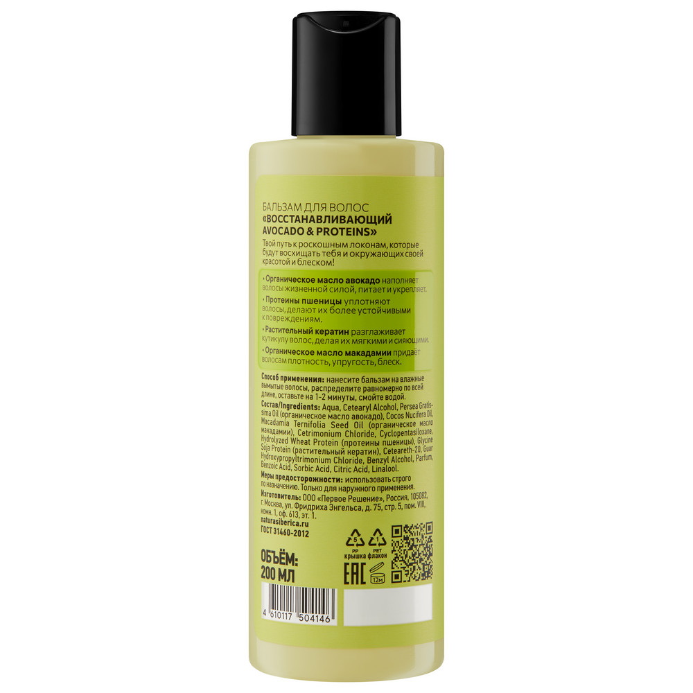 Бальзам для волос "Восстанавливающий. Avocado & Proteins"