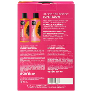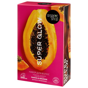Подарочный набор ORGANIC SHOP для волос "SUPER GLOW" Шампунь для волос "Сияние и блеск. Papaya & Arginine", Бальзам для волос "Сияние и блеск. Papaya