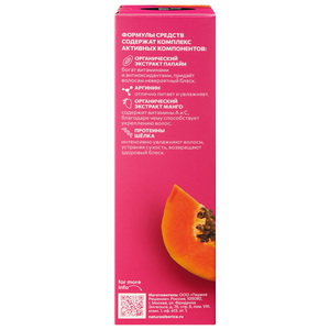 • Органический экстракт папайи – богат витаминами и антиоксидантами, придаёт волосам невероятный блеск.