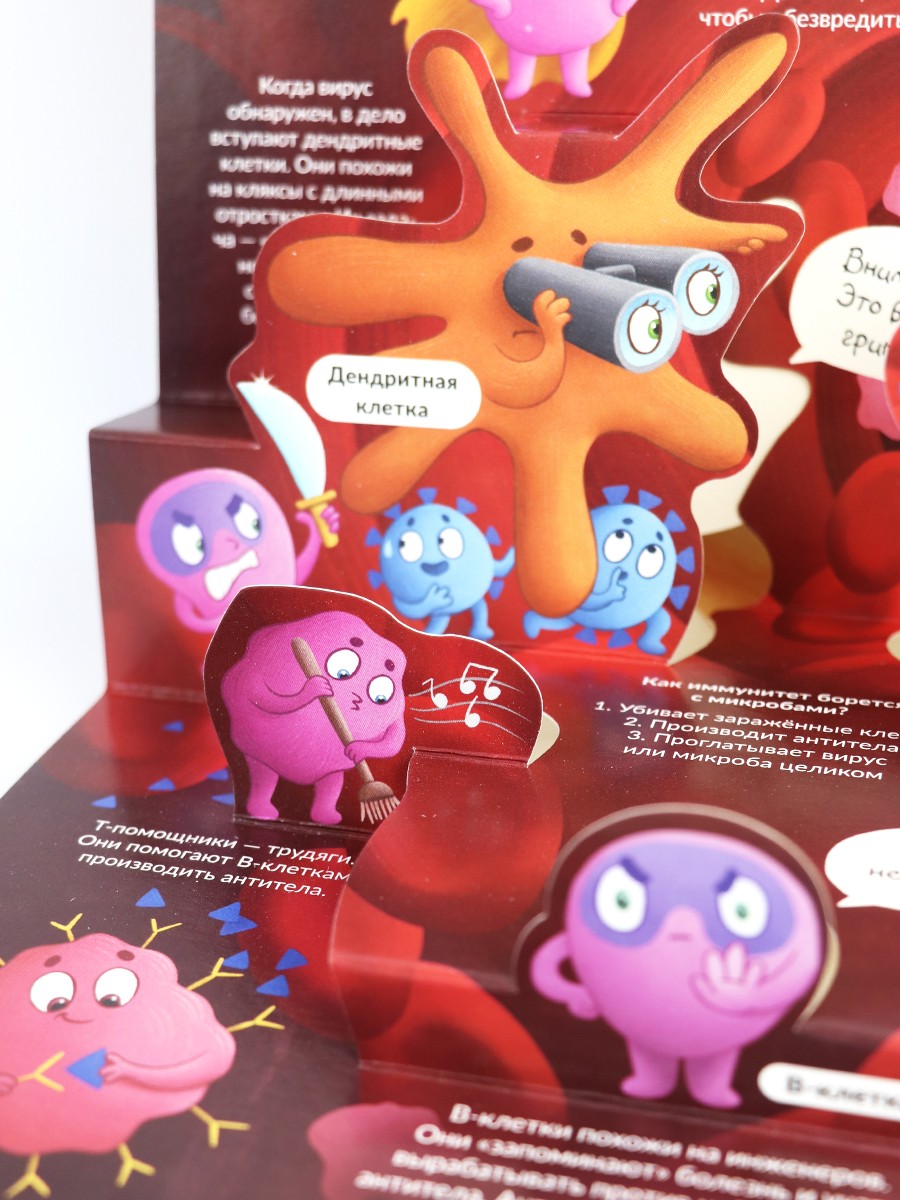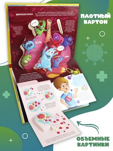 Яркая энциклопедия Вирусы и бактерии в формате книжки-панорамки с невероятными объёмными иллюстрациями. 3D-развороты создают ощущение дополненной реальности. Внутри малыш найдёт откидные клапаны-сюрпризы, открывая которые он узнает ещё больше интересного о микробах. Наличие объемных и открывающихся элементов развивает мелкую моторику и пространственное мышление ребёнка. Размер обложки: 26х20 см, 5 объёмных разворотов. Порадуйте своего ребёнка увлекательной энциклопедией-панорамкой с яркими иллюстрациями! Количество страниц 10.