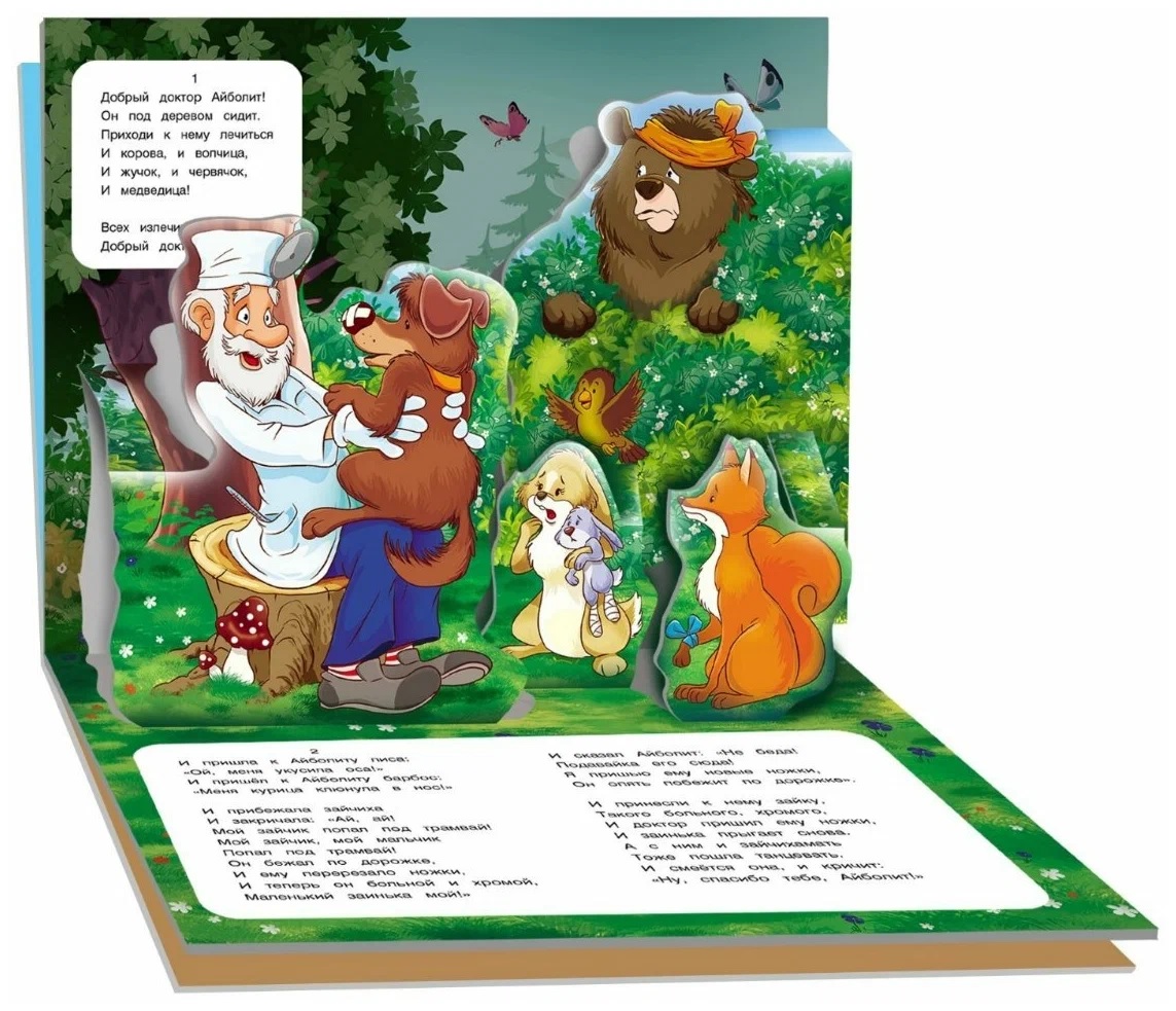 Книжка-панорамка "Айболит" унесет воображение ребенка в сказку Корнея Чуковского о добром докторе Айболите, который очень любит животных и заботится о них. Рассматривая книжку, ребенок не только встретится с яркими, красочными героями произведения. Он увидит, что животные, а также все, что их окружает, выглядит объемно и очень реалистично.