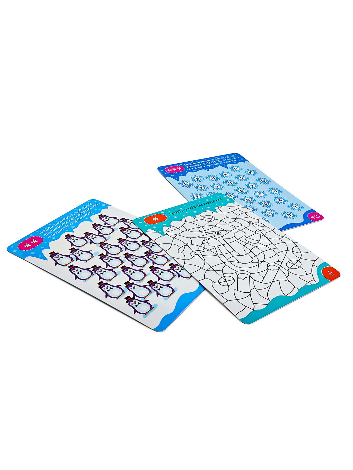 Наступает Новый год, а значит пришло время выбирать весёлые и полезные подарки. Игра «Новогодние головоломки» прекрасно подойдёт! Главными героями игровых заданий стали весёлые снеговики, озорные пингвины, задорные зайцы, игривые белки и, конечно, добрый Дед Мороз со Снегурочкой.Головоломки разного уровня сложности (отмечены звёздочками): загадки, лабиринты, поиск отличий, ребусы и т. д. В игре 50 заданий, которые можно выполнять снова и снова, благодаря многоразовым карточкам и маркеру на водной основе. В процессе игры развивается логическое мышление, внимание, память и воображение. Компактные, лёгкие и увлекательные головоломки отлично подойдут в качестве подарка девочке и мальчику на праздник, под ёлку, а также развлекут ребёнка в поездке, скрасят ожидание в очереди.