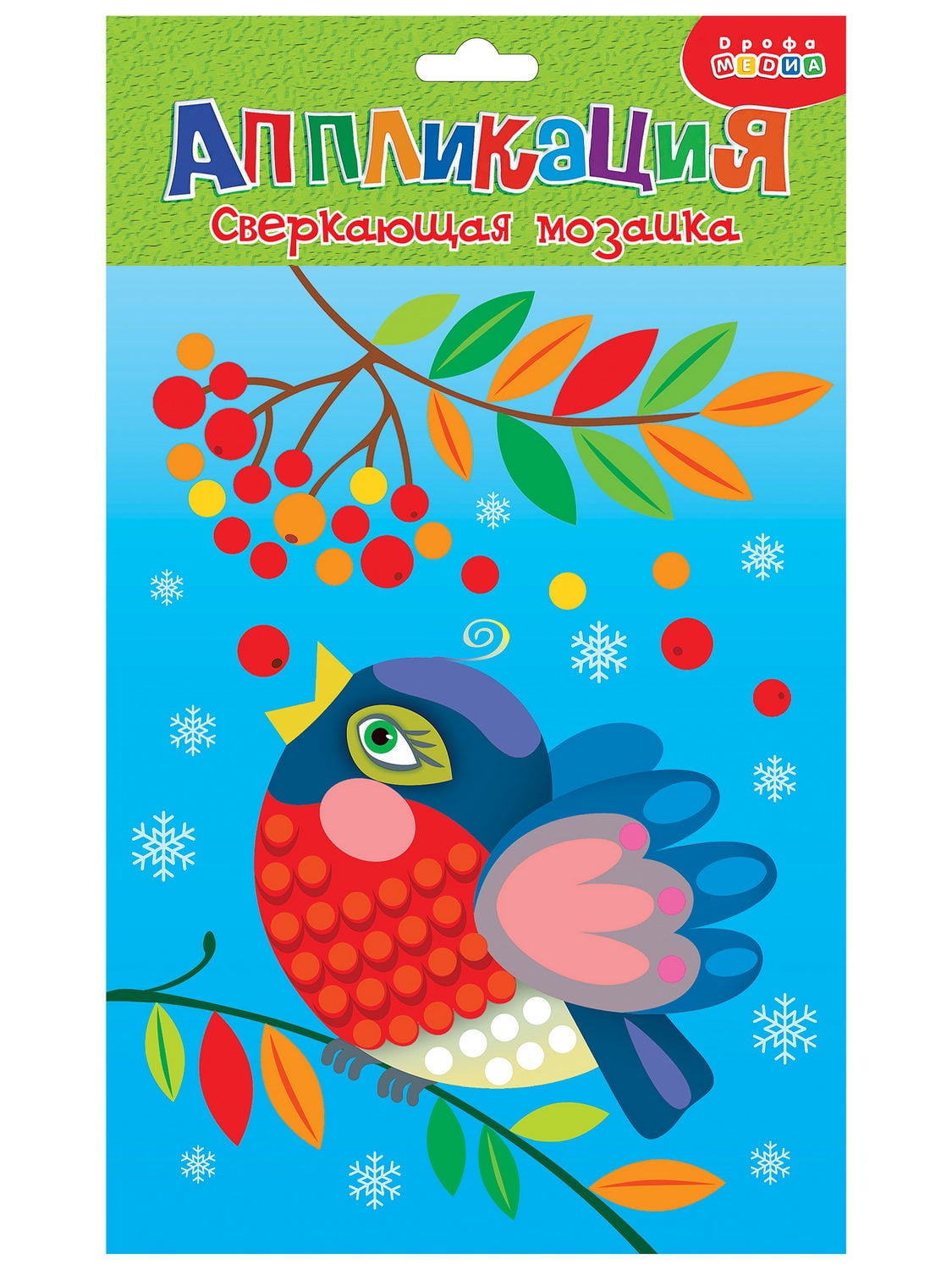Праздничная и яркая аппликация, состоящая из красочных деталей, отличающихся по форме и размерам. Готовое изделие эффектно переливается всеми цветами радуги, благодаря покрытию деталей мозаики голографической плёнкой, придающей им необыкновенный блеск.Малыш легко справится с работой, ведь ему не нужны ни клей, ни ножницы: объёмные детали легко приклеятся на картонную основу. Готовая картинка станет прекрасным подарком для родных и друзей, или просто украшением детской комнаты.