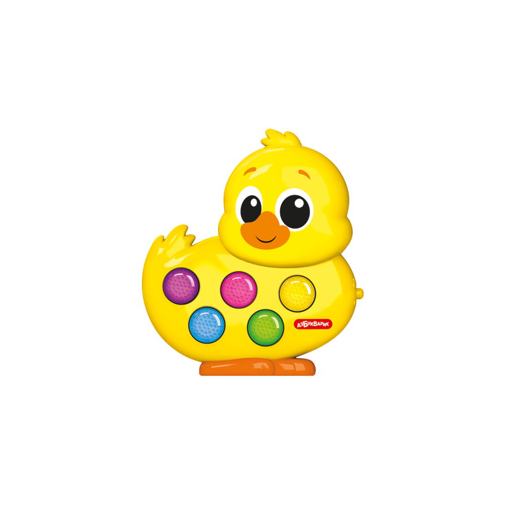 Музыкальный утёнок из серии «Любимые Веселушки» мило улыбается и замечательно поет! Нажимая на разноцветные кнопочки, малыш послушает веселые песенки и мелодии («Озорной утёнок», «Два весёлых гуся», «Если весело тебе, то делай так», «Танец маленьких утят», «Четыре таракана и сверчок», «Ах, вы, сени, мои, сени» и др.), а также множество забавных звуков и голосов зверят. Всего в игрушке 25 песенок, мелодий, звуков. Во время звучания песенок на кнопочках мигают огоньки!Соберите всю серию «Любимые Веселушки» – игра будет еще веселее! А у ребенка появится много новых друзей – музыкальных зверюшек.