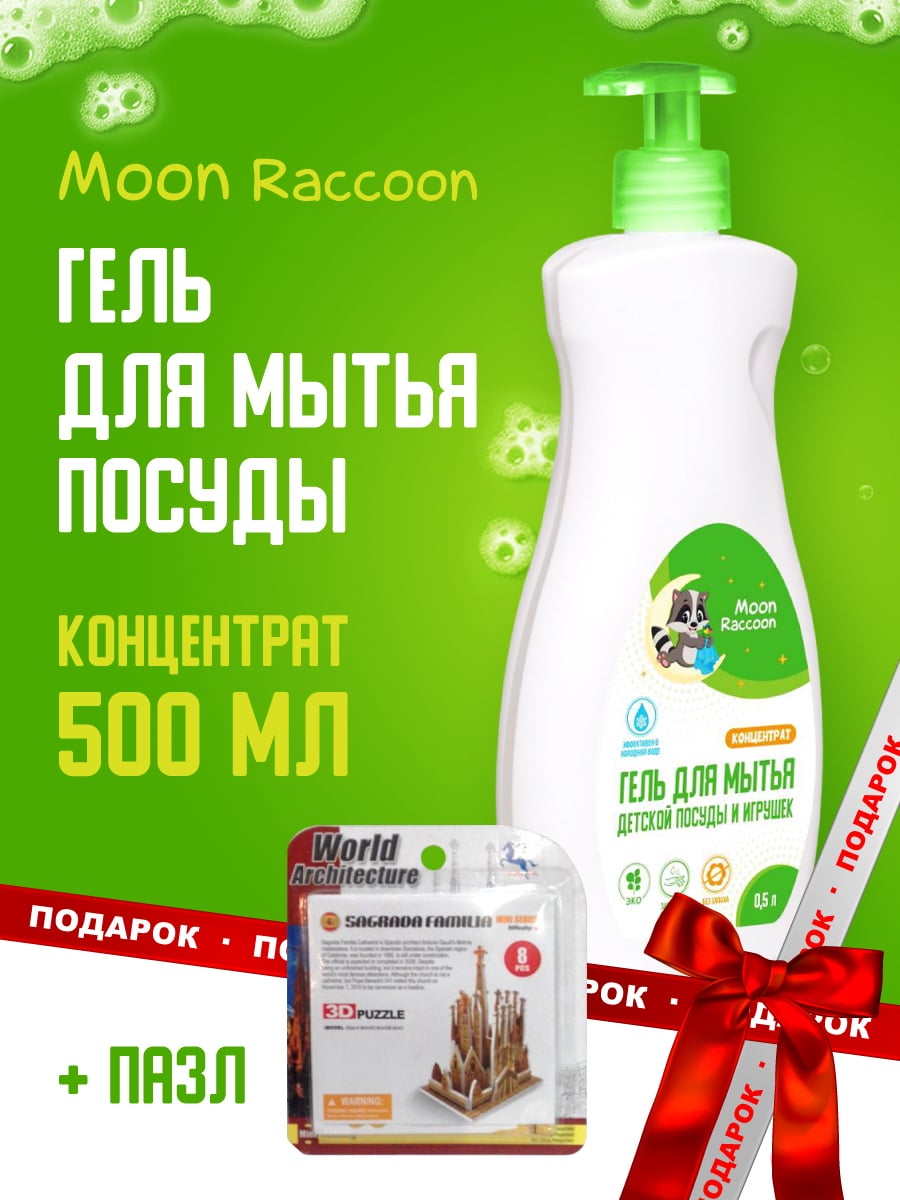 Moon Raccoon Premium Care. Гель для мытья детской посуды + Подарок пазл Достопримечательности мира